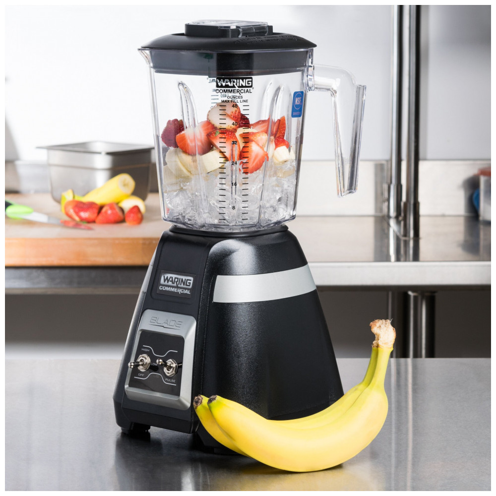 O liquidificador Waring BB300 Blade de 1,42 Litros com controles de alternância é a solução ideal para preparações leves a médias de alimentos e bebidas em seu pequeno restaurante, café de smoothies ou bar! Seus controles simples de alternância são fáceis de usar, com opções de alta, baixa, desligado e pulso, permitindo que até mesmo o funcionário mais novo utilize efetivamente este equipamento de preparação de alimentos. Além disso, com a capacidade de preparar até 2549 bebidas por dia, este liquidificador de serviço médio é uma excelente adição à sua bancada. Projetado para fazer porções de 1,42 Litros de molhos, patês, coquetéis congelados ou outras bebidas misturadas, este liquidificador apresenta uma jarra de copoliéster empilhável para armazenamento mais eficiente quando não está em uso, o que é especialmente útil se você planeja manter várias jarras em mãos para não precisar lavar uma única jarra entre lotes. Suficientemente potente para misturar até 3 margaritas em 12 segundos ou menos, o liquidificador Blade possui um motor de 1 hp com velocidades alta e baixa para que você possa personalizar o processo de mistura conforme suas necessidades.