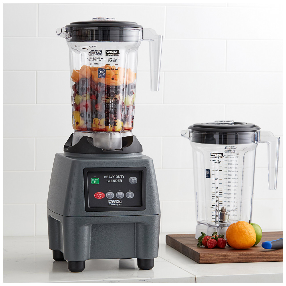 O liquidificador comercial Waring CB15P, com motor robusto de 3 3/4 hp, mistura facilmente mais de 100 bebidas ou porções por dia. Seu recipiente de 1 galão de copoliéster livre de BPA é perfeito para grandes lotes, empilhável para facilitar o armazenamento. A tampa emborrachada permite misturar alimentos quentes ou frios, com um tampão central removível para adicionar ingredientes durante o funcionamento. Controles intuitivos de toque eletrônico com 3 velocidades e função pulsar. Projetado para durabilidade, com lâmina de aço inoxidável, carcaça de motor fundido e pés de borracha resistentes à vibração. Ideal para sopas, molhos, coquetéis, smoothies e muito mais!