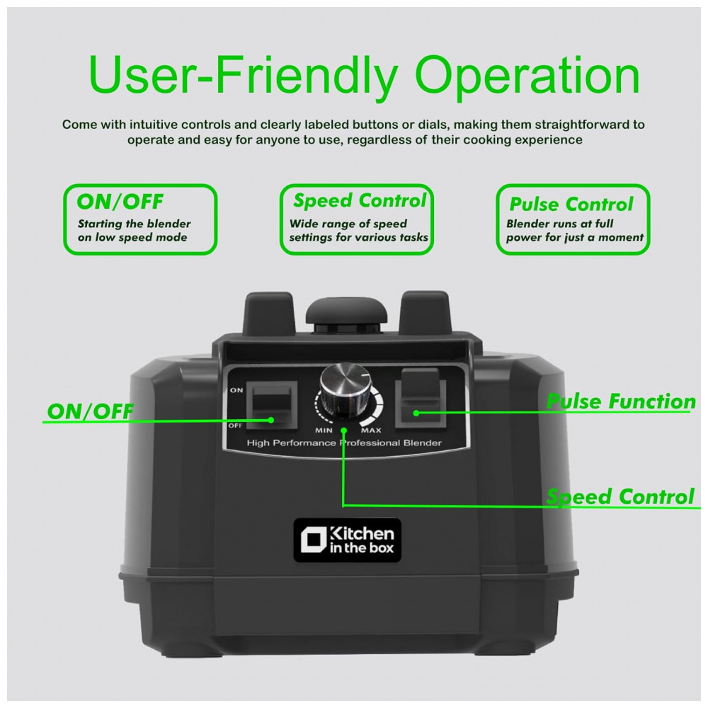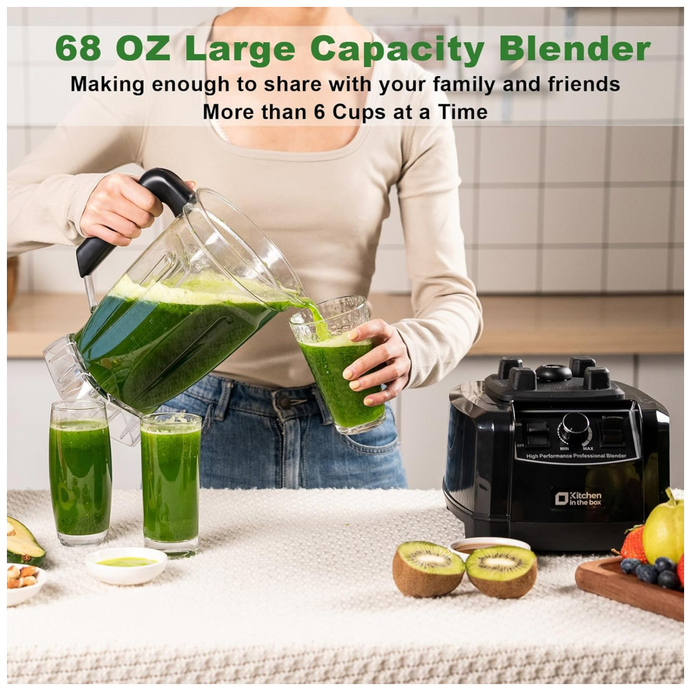 Liquidificador Kitchen in the box Preto 2L 1500W Jarra Plástica BPA Free Lâminas Inox 8 Pontas 110V
