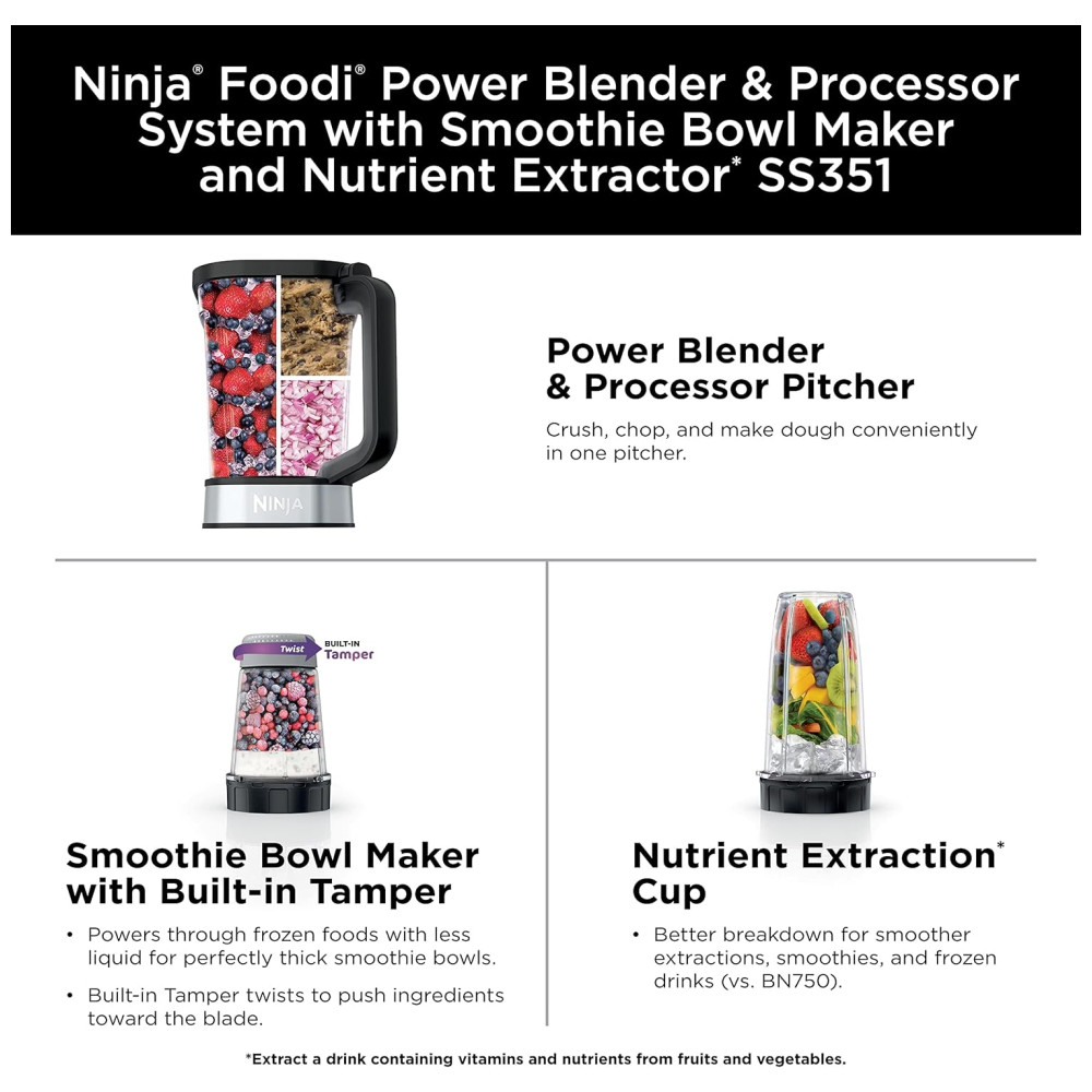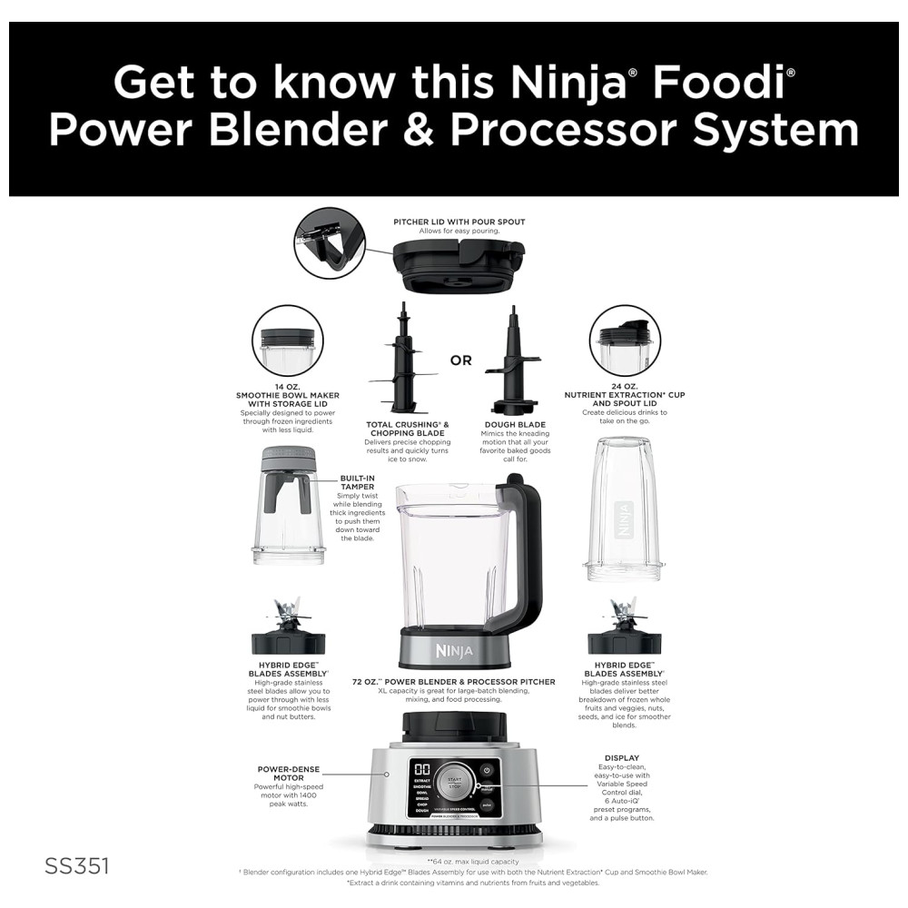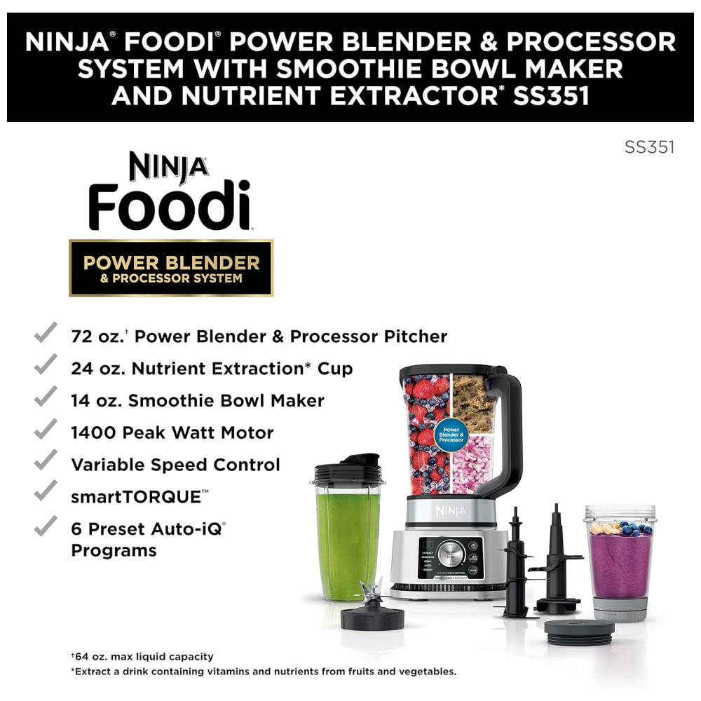 Liquidificador Ninja Foodi Power Blender Processor System com Fabricante de Smoothie Bowls e Extrator de Nutrientes Edição Canadense