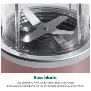 As poderosas lâminas extratoras de aço inoxidável utilizam a ação ciclônica para quebrar os ingredientes mais difíceis, transformando-os em bebidas e cremes saudáveis. Os copos de plástico de alto desempenho, livres de BPA, são duráveis e resistentes.