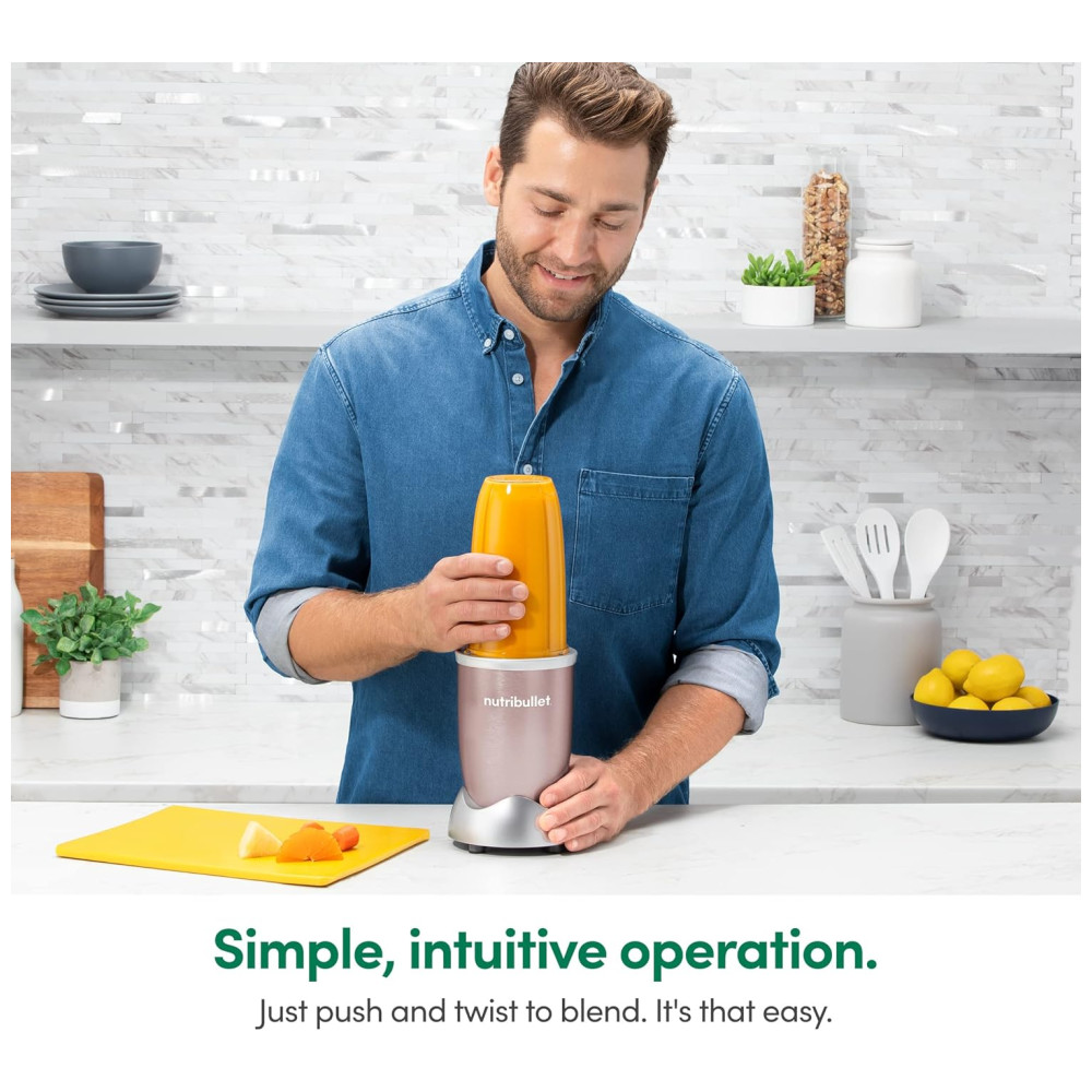 Conheça o Liquidificador NutriBullet Pro NB9-1301RG 13 Peças em Rosa Dourado, com potência de 900 watts.