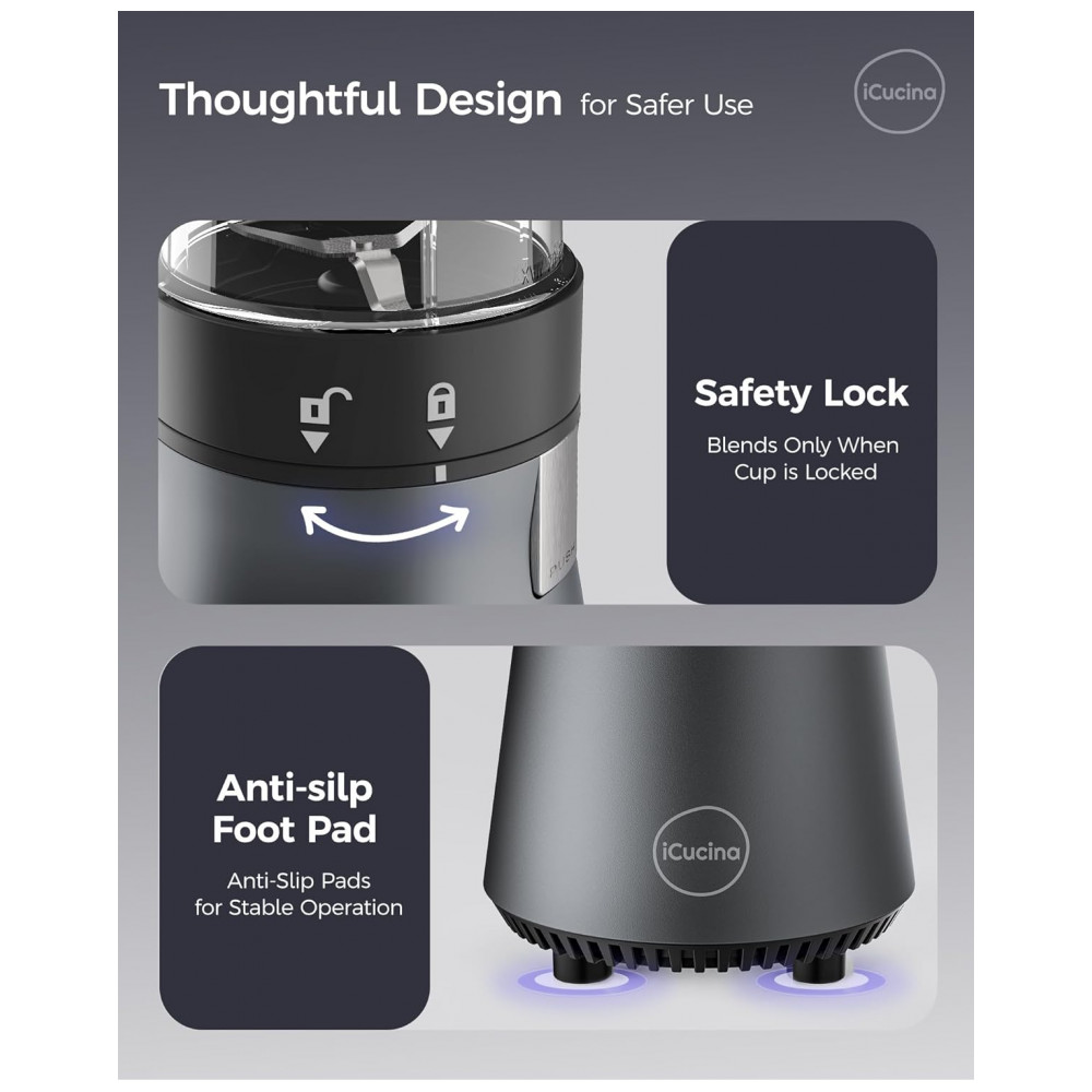 Liquidificador para Vitaminas com 2 Copos de 830mL e Tampa 110V 500W iCucina Cinza