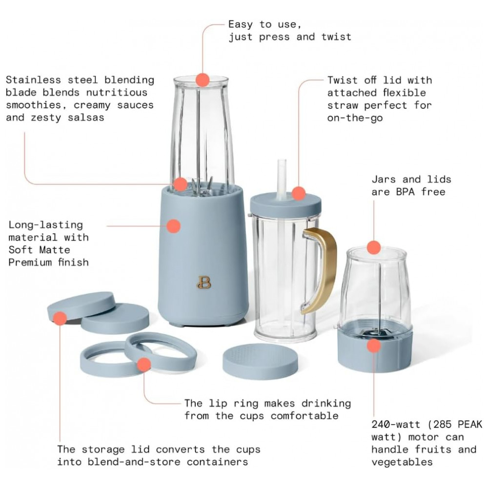 Liquidificador pessoal 12 peças Beautiful by Drew Barrymore 240W azul fosco 110V