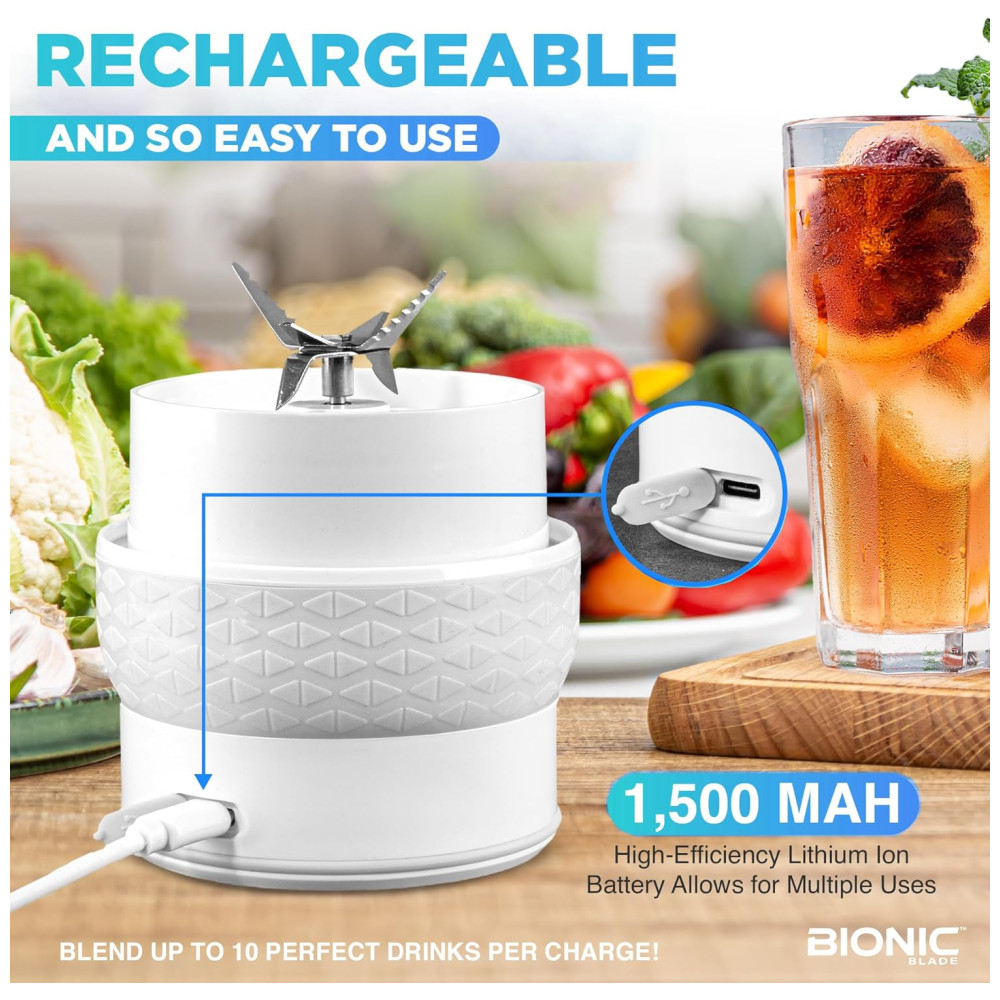 Descubra a conveniência do Liquidificador Bionic Blade de Tamanho Pessoal, perfeito para preparar shakes e smoothies ultra-suaves, onde quer que você esteja. Com um motor poderoso de 18.000 RPM e 150 watts, este liquidificador transforma facilmente cubos de gelo em neve para milk shakes cremosos, pica nozes para saladas, rala queijo parmesão para massas e até mesmo moe grãos de café!