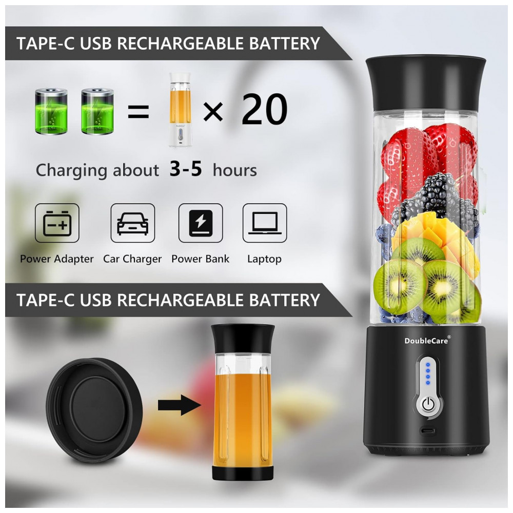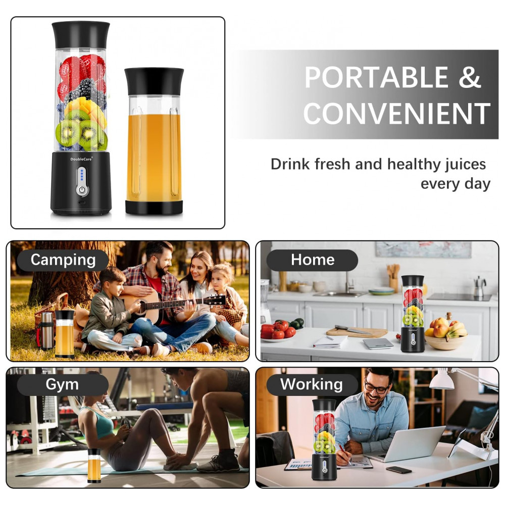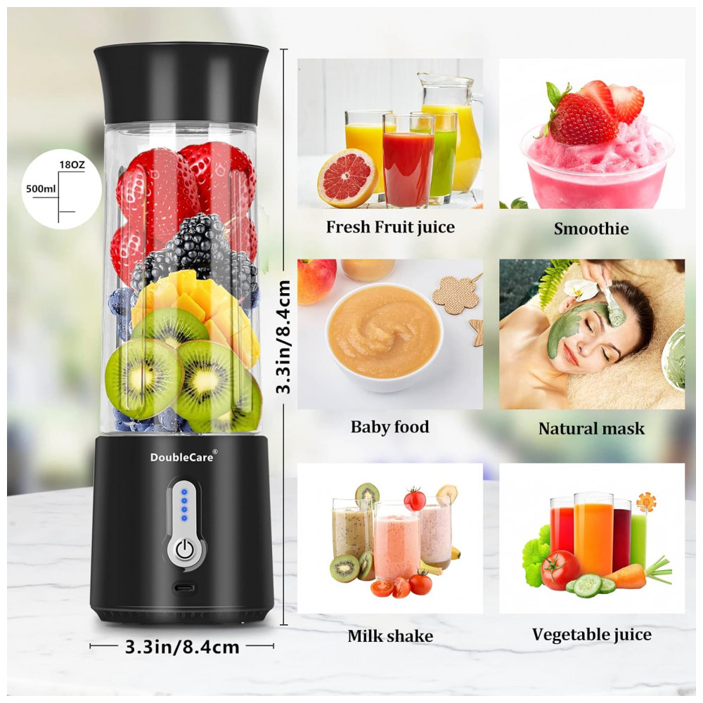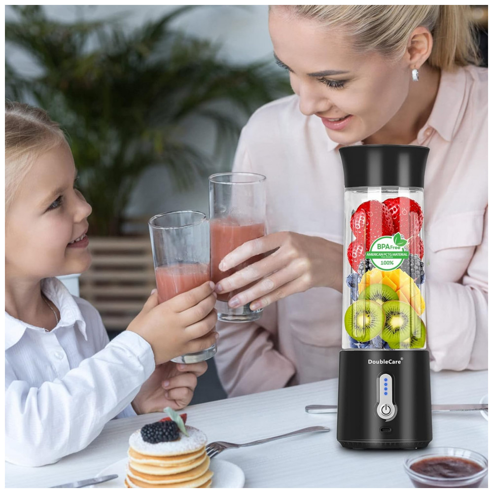 Liquidificador Pessoal Portátil 500mL Recarregável USB e Material Livre de BPA 110V DoubleCare Preto