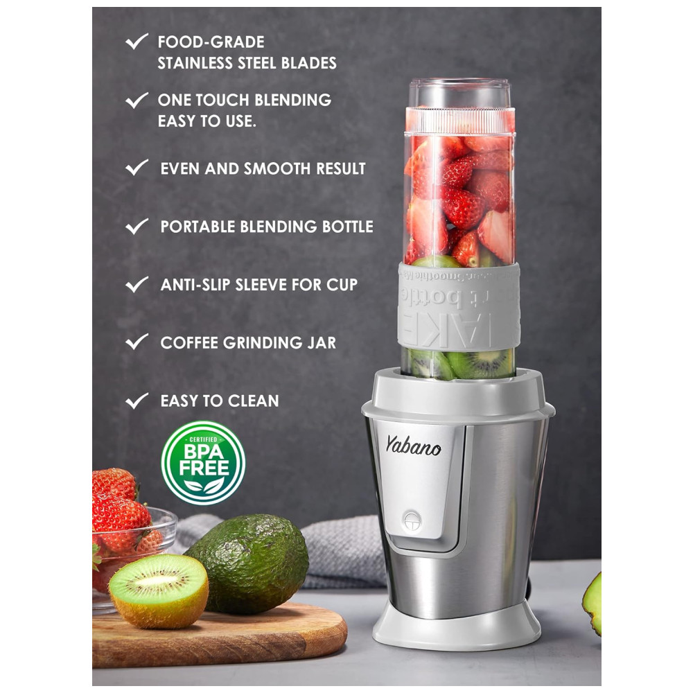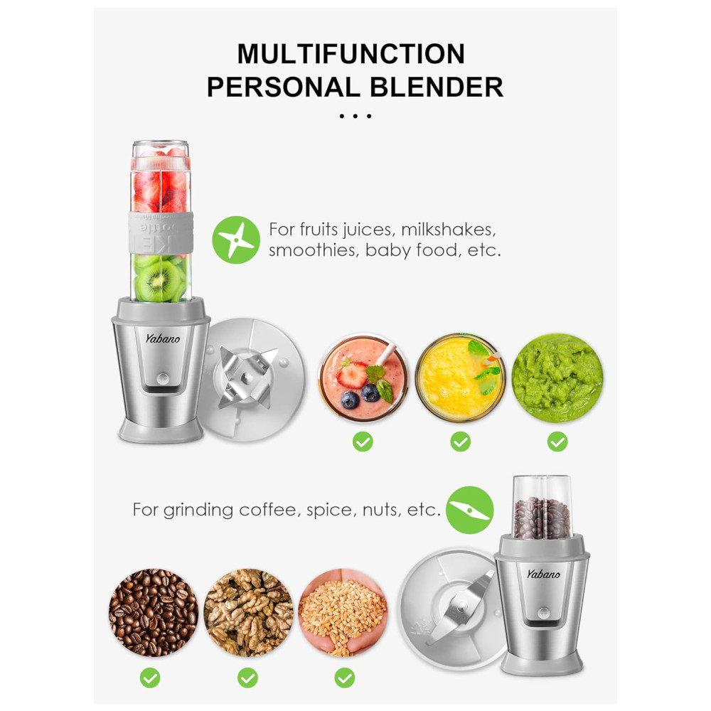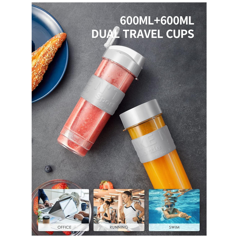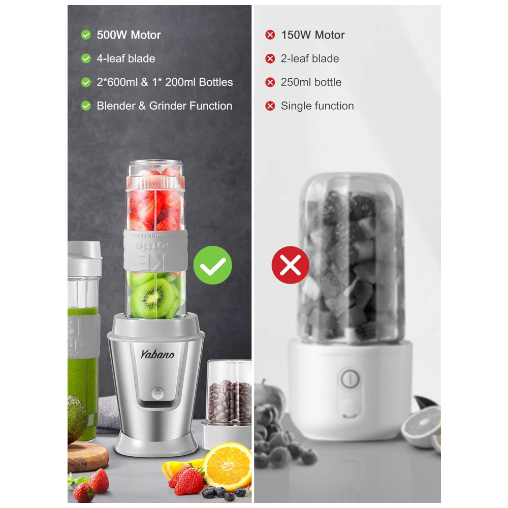 Liquidificador Pessoal Portátil com 2 Garrafas de Viagem de 600mL 110V 500W Yabano Cinza