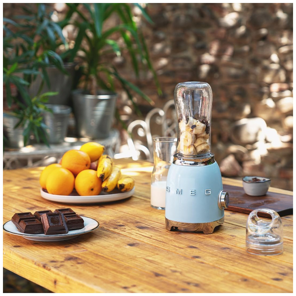Liquidificador Pessoal SMEG 50s Retro Style com Botão Iluminado e Dois Frascos de 600 ML Livres de BPA PBF01PBUS Azul Pastel Médio
