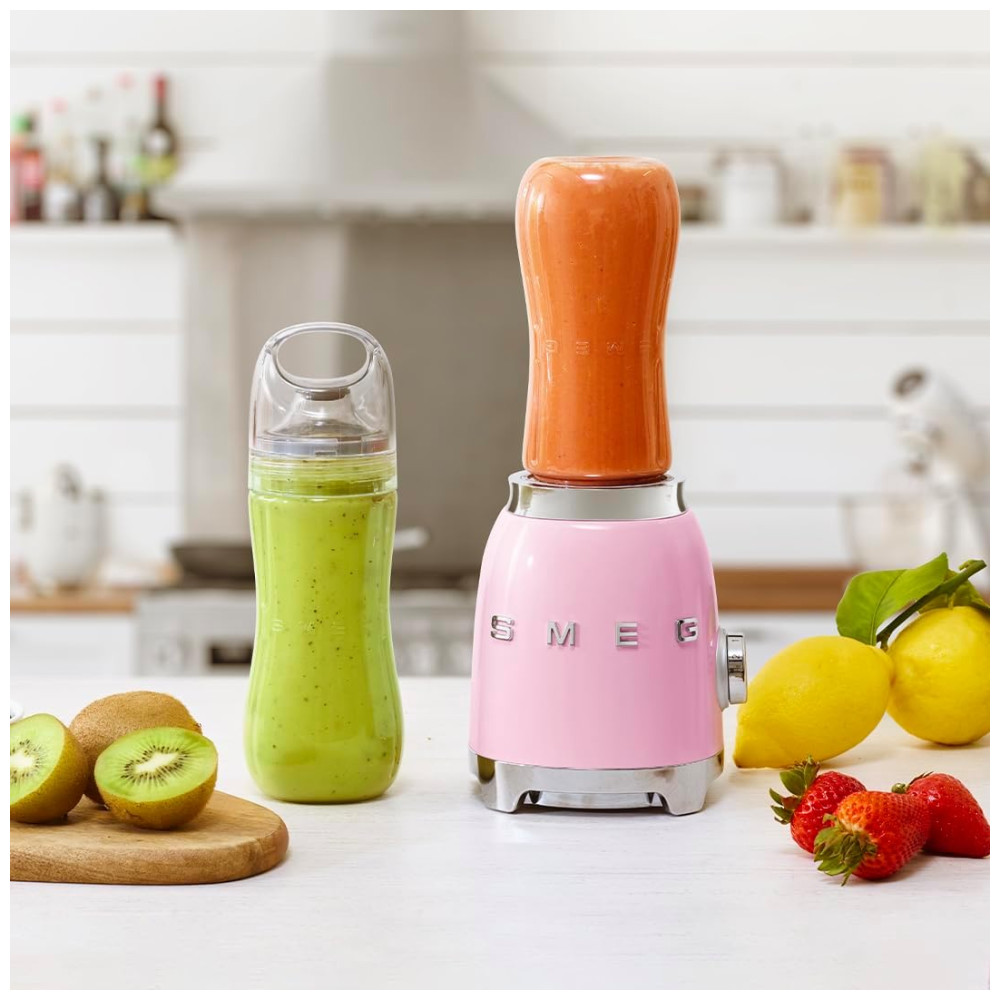 Liquidificador Pessoal Smeg 50s Retro Style com Botão Iluminado e Duas Garrafas de 600 ML Livres de BPA PBF01PKUS Rosa
