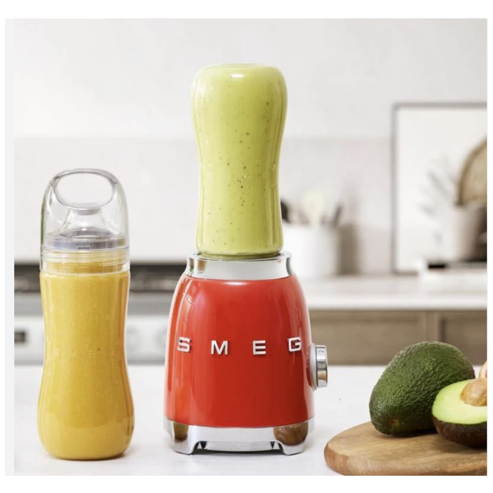 Liquidificador Pessoal SMEG 50s Retro Style com Botão Iluminado e Duas Garrafas de 600 ML Livres de BPA PBF01RDUS Vermelho Médio