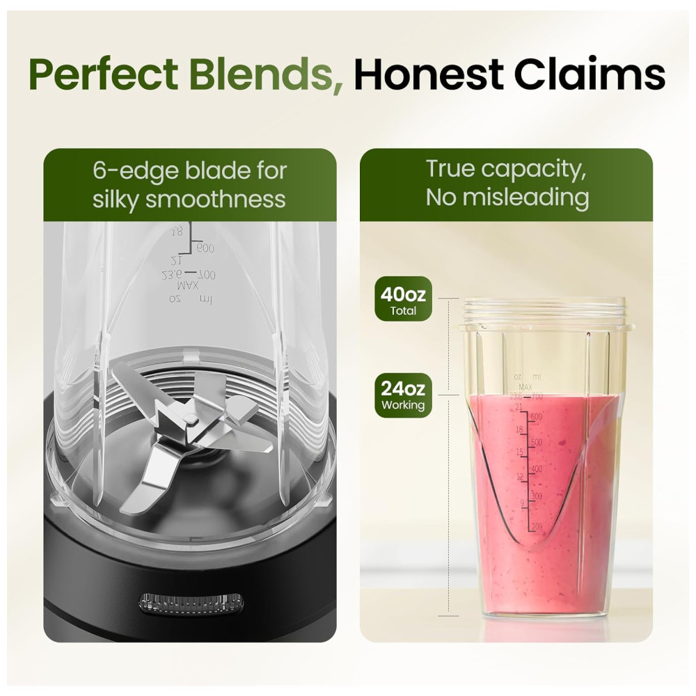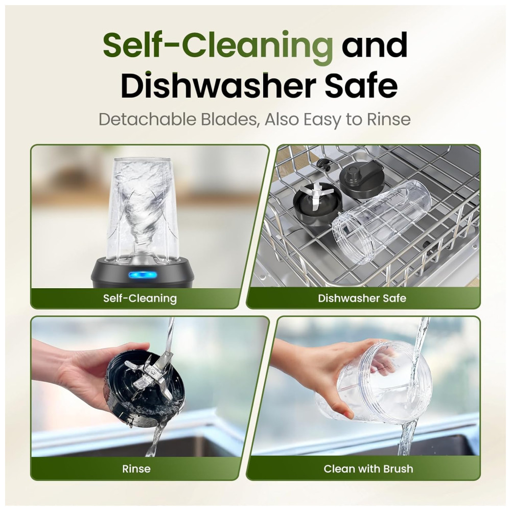Equipado com 6 lâminas de aço inoxidável, o liquidificador TOPZEE é capaz de triturar cubos de gelo facilmente, sendo também eficaz para misturar molhos, geléias e até comida para bebês. A limpeza é simples, podendo ser realizada na máquina de lavar louça.