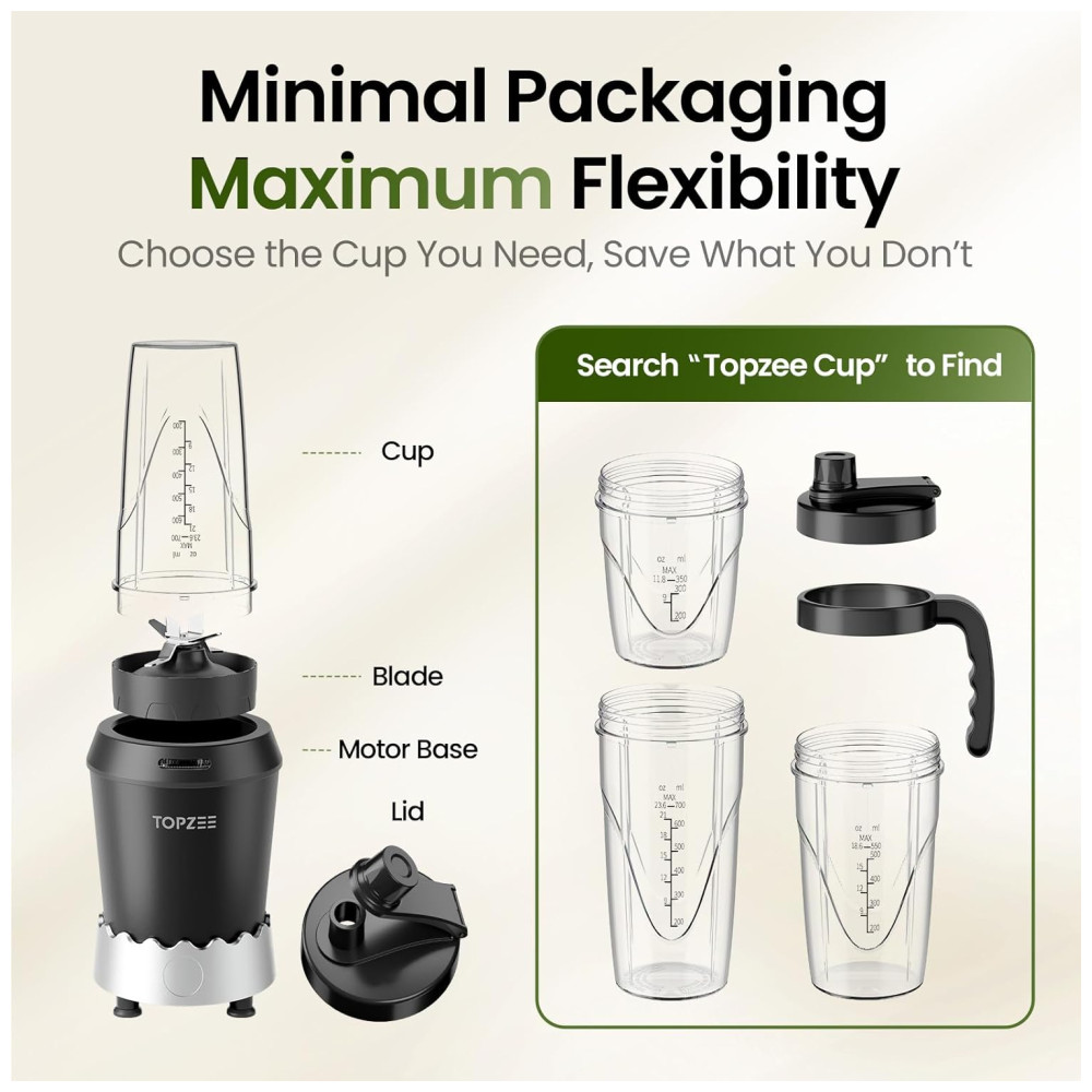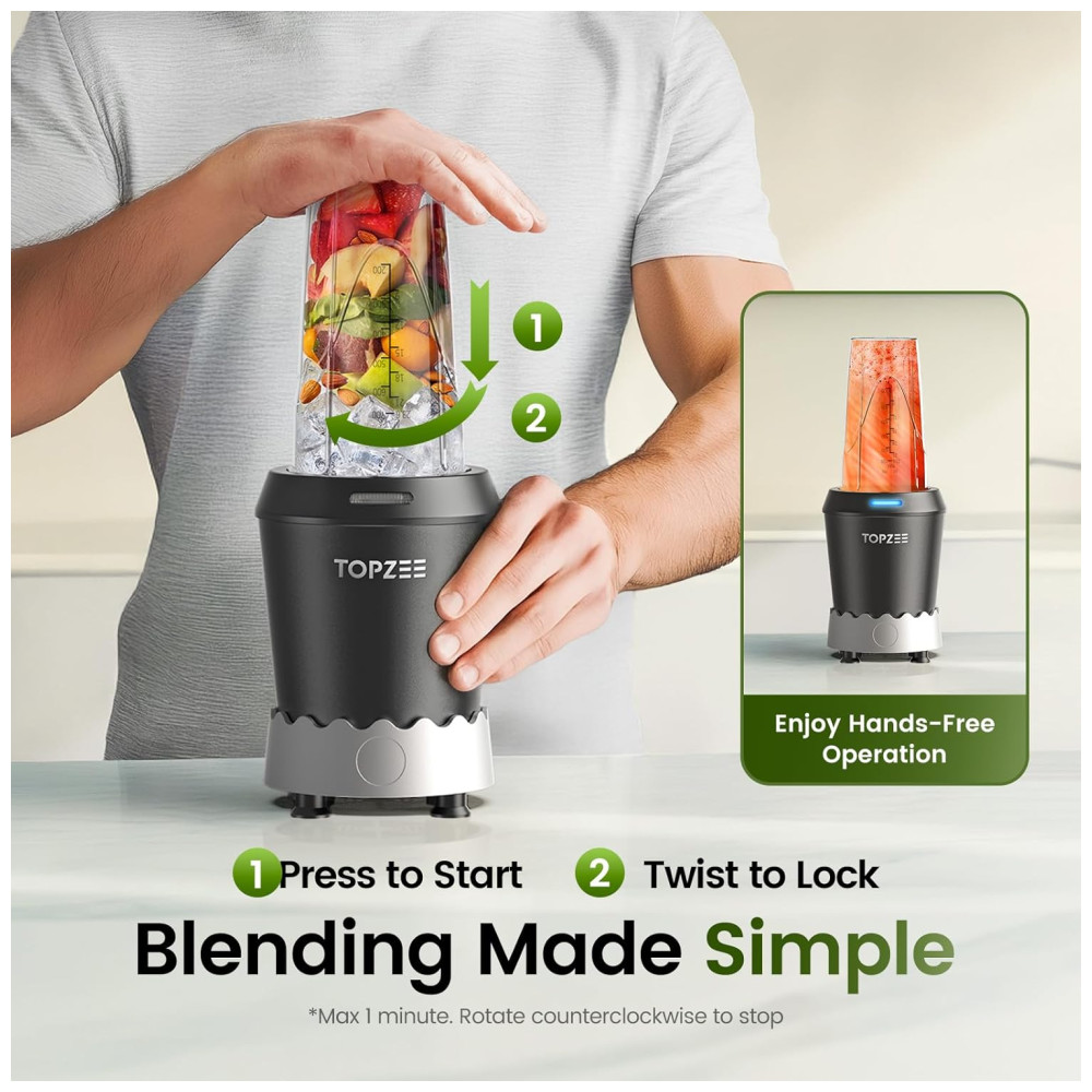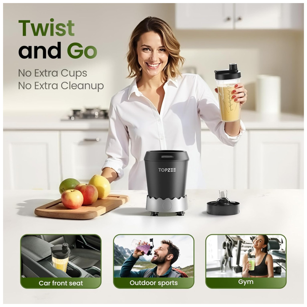 Liquidificador Portátil com Copo Easy Go de 700mL e 6 Lâminas de Aço Inoxidável 110V 1200W Topzee Preto