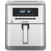 A estrutura é compacta, possui pés antiderrapantes para maior estabilidade e a operação é feita por simples pressão do copo na base. O kit inclui tampas para viagem e armazenamento, tampa-coador e tampa temperadeira. O sistema conta com proteção contra superaquecimento e as peças removíveis são fáceis de lavar.