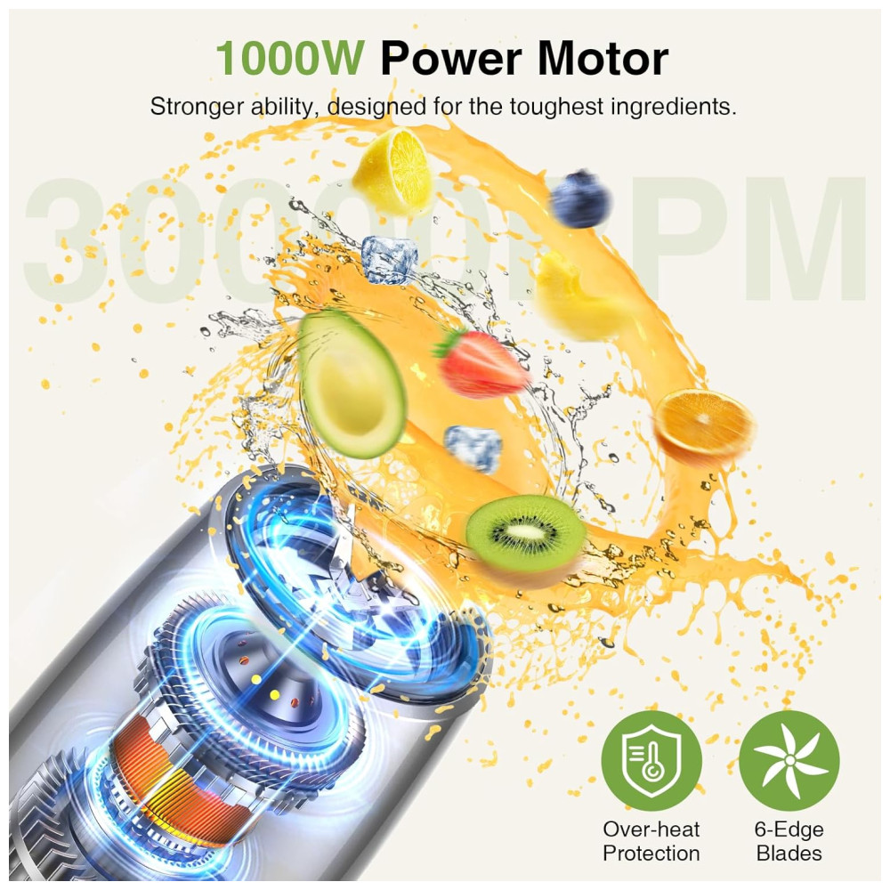 O Liquidificador AllinOne da marca KOIOS é um produto multifuncional e potente, com motor de até 1000 W e equipado com 2 conjuntos de lâminas de aço inoxidável 304 de qualidade alimentar. Ideal para misturar, moer e triturar alimentos ao mesmo tempo, ele é perfeito para preparar smoothies, milkshakes, sucos e bebidas congeladas em segundos. Sua tecnologia de motor turboalimentado em cobre oferece até 30.000 RPM, gerando menos calor e proporcionando uma experiência de sabor mais suave e eficiente.