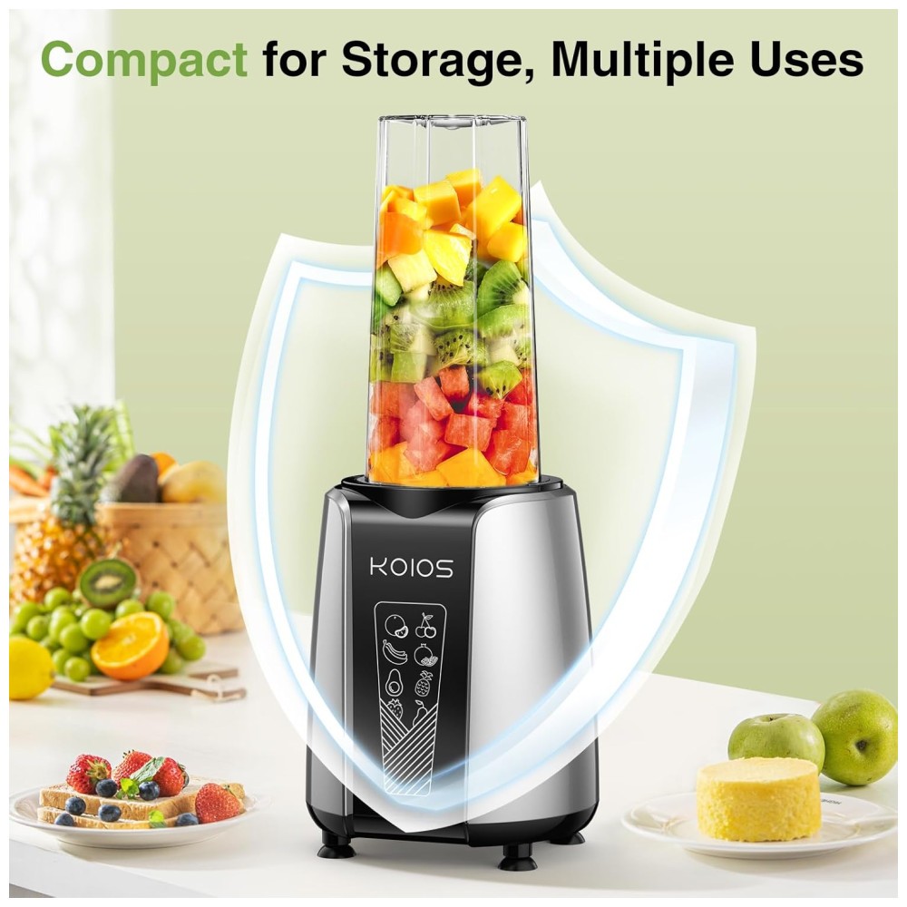 Liquidificador Portátil com Moedor de Café Função de Pulso e Copo para Viagem de 650mL Incluso 1000W KOIOS Prata