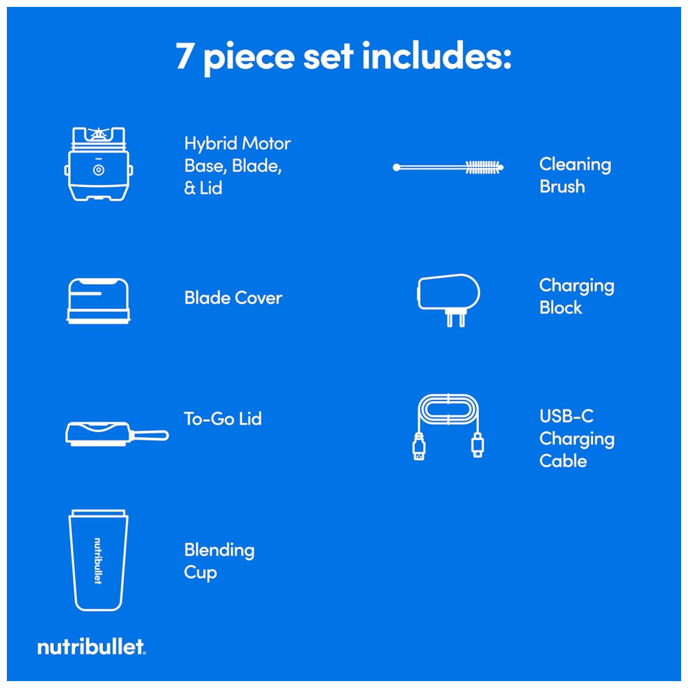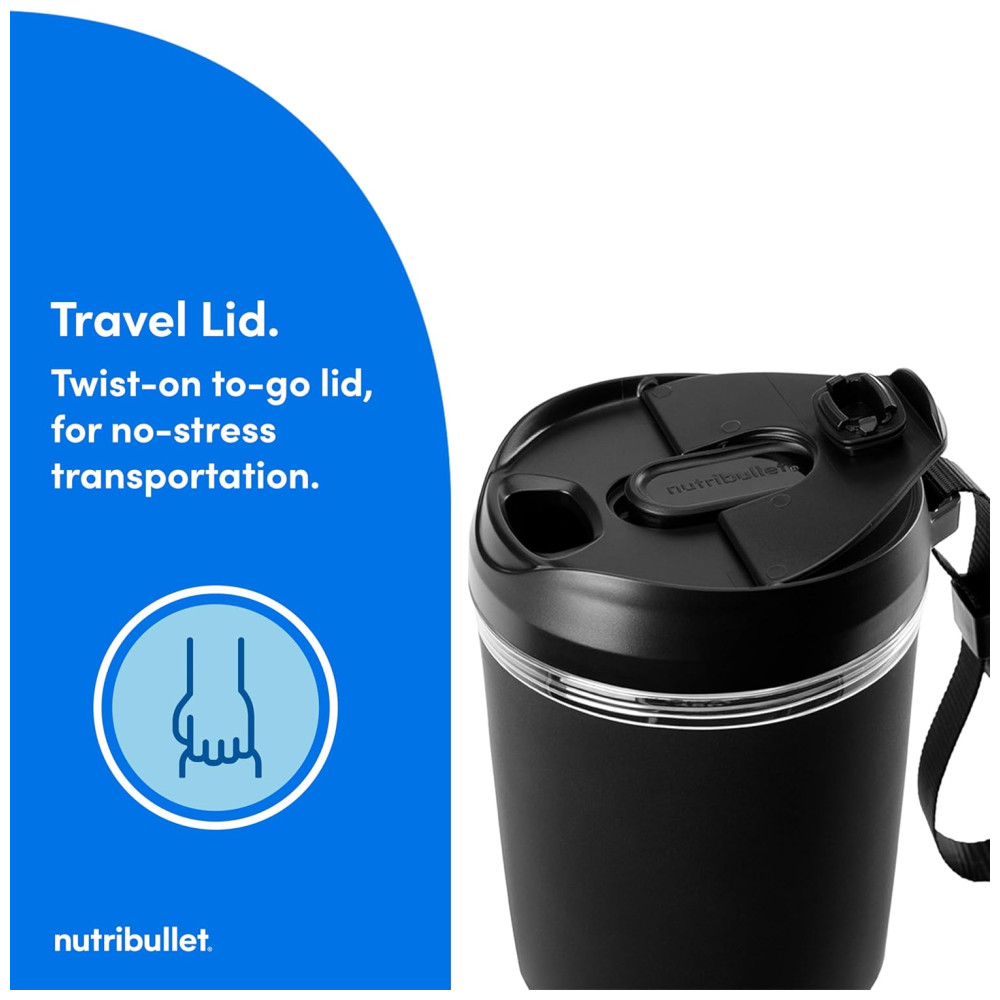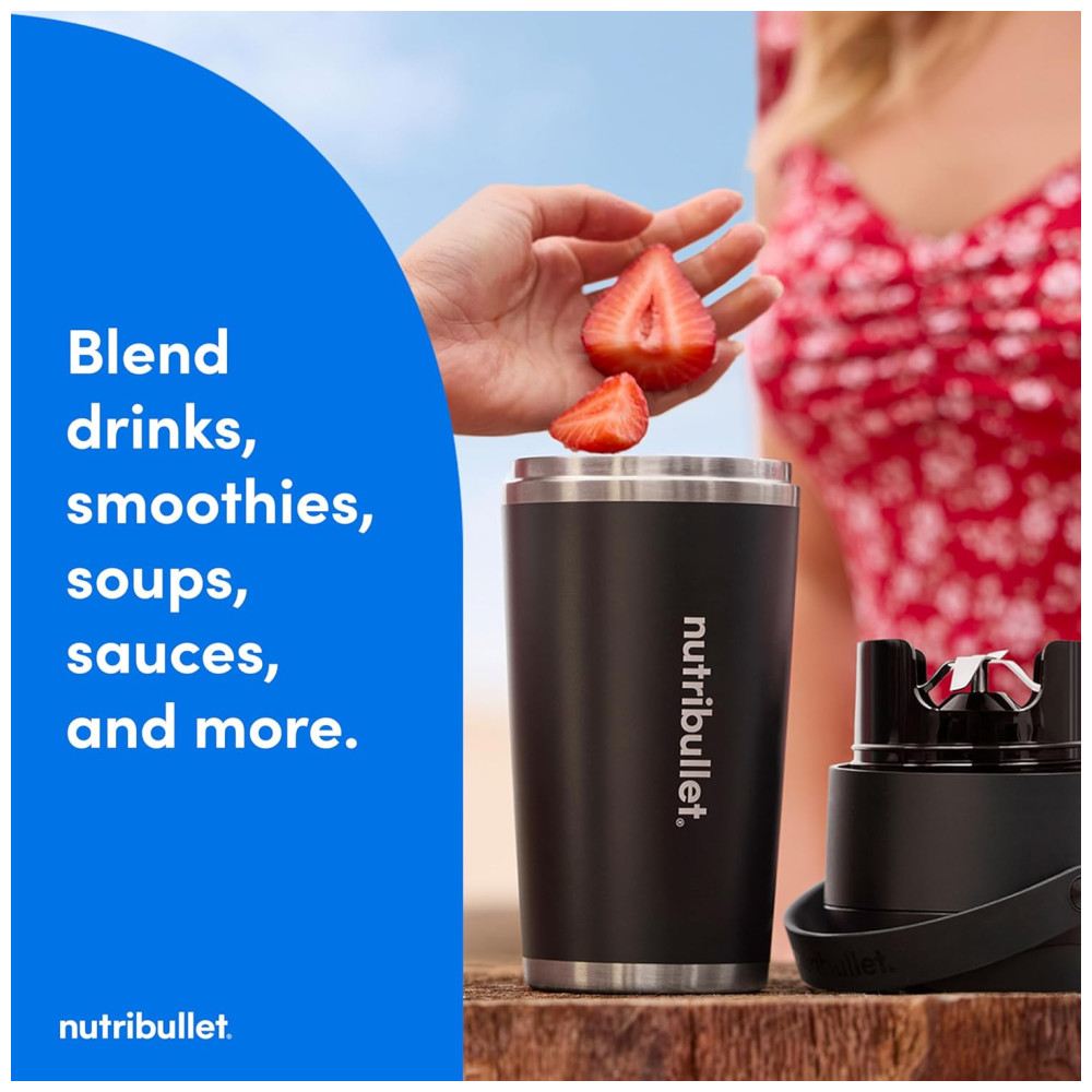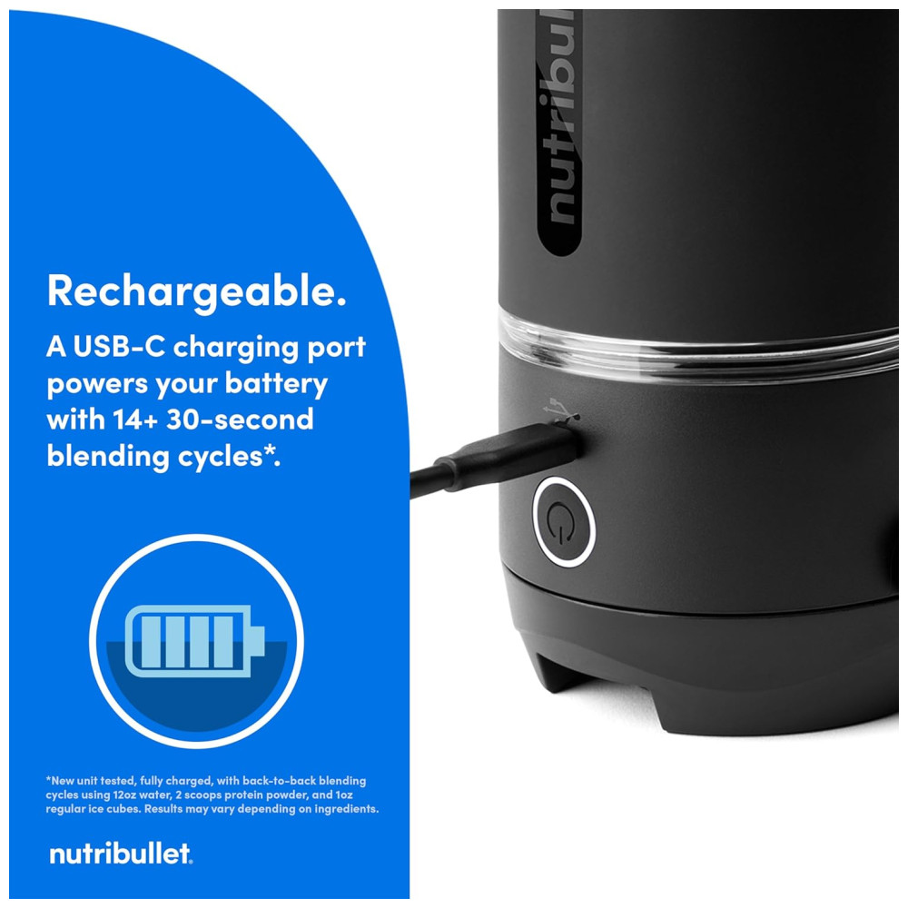Liquidificador Portátil Ideal para Viagens com Alça de Transporte e Carregamento por USB-C Nutribullet Preto