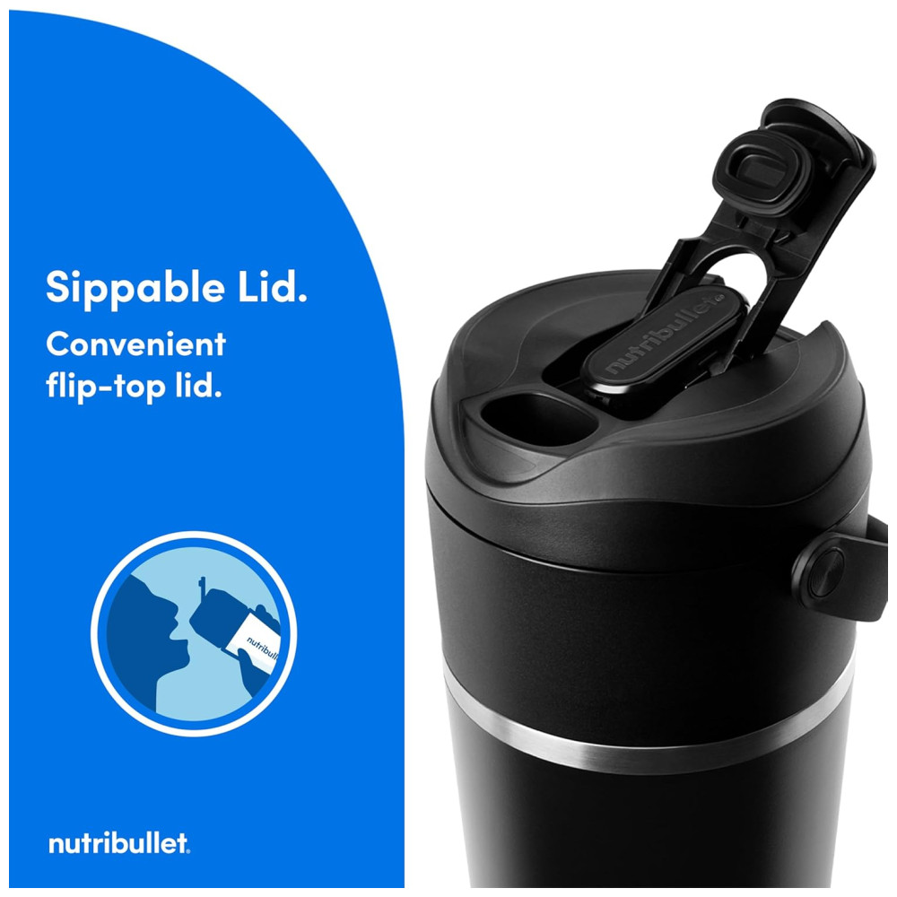 O Nutribullet Flip é um liquidificador portátil com copo térmico de aço inoxidável, ideal para misturas rápidas onde quer que você esteja. Compacto e com alça de transporte, o Flip é perfeito para levar em viagens ou para aventuras ao ar livre. Seu copo térmico mantém suas misturas frias por até 24 horas, enquanto o motor de alto torque de 11,1 V oferece 50% mais energia de bateria do que a maioria dos liquidificadores portáteis, permitindo misturar gelo, frutas congeladas e outros ingredientes frescos para preparar smoothies em qualquer lugar.
