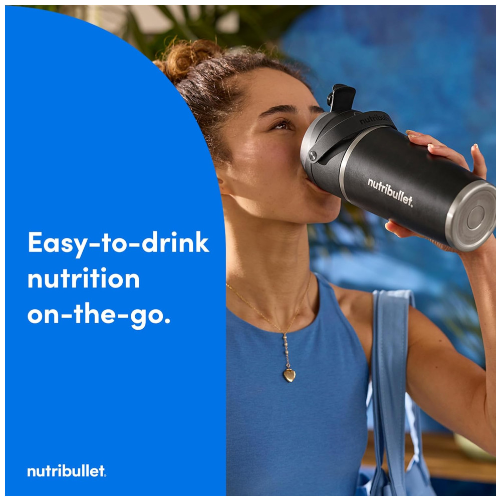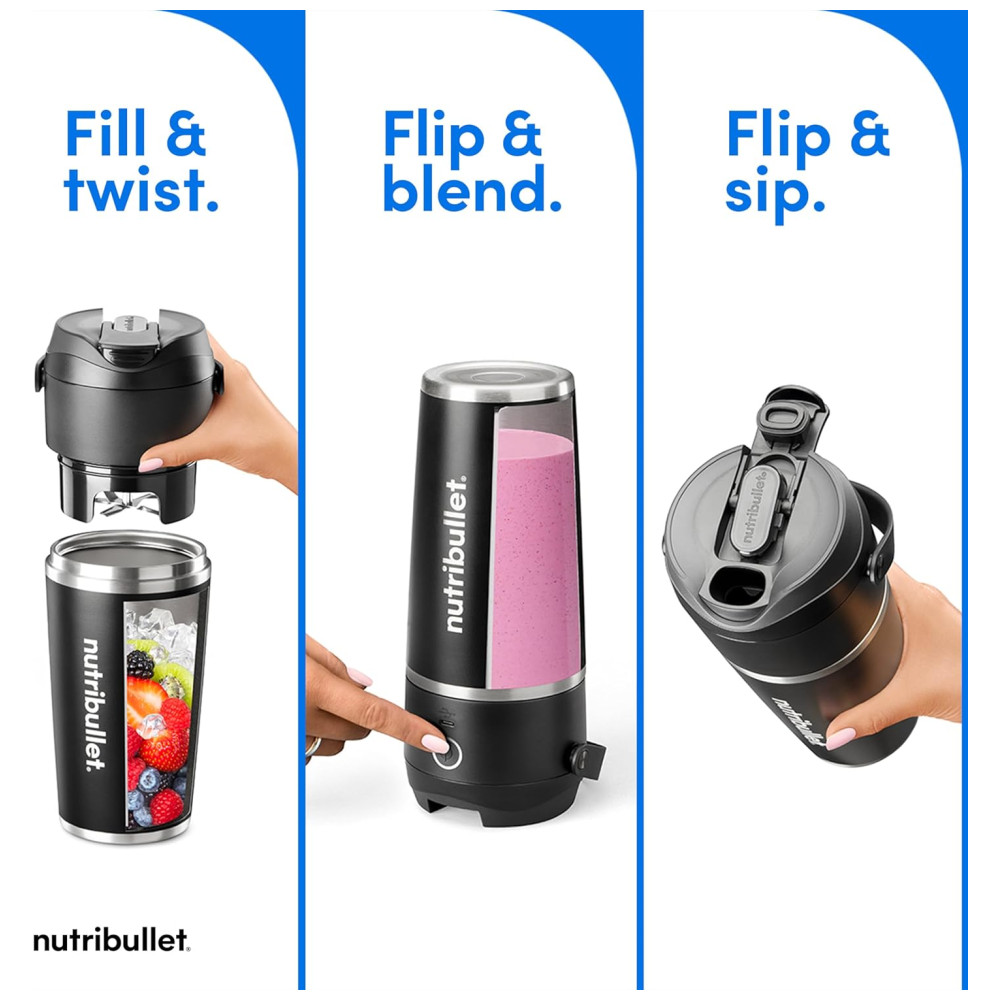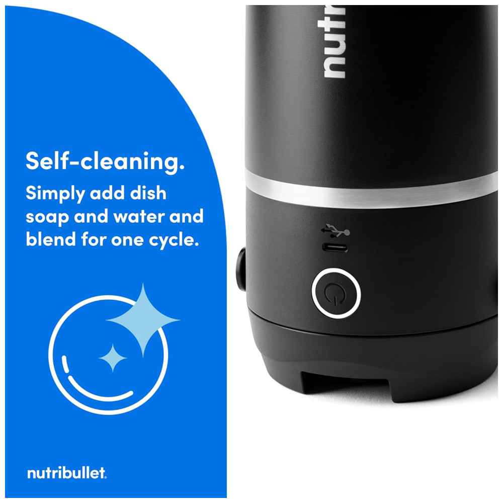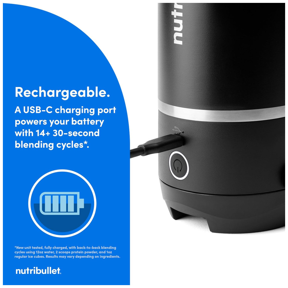 Liquidificador Portátil Ideal para Viagens com Alça de Transporte e Carregamento por USB-C Nutribullet Preto
