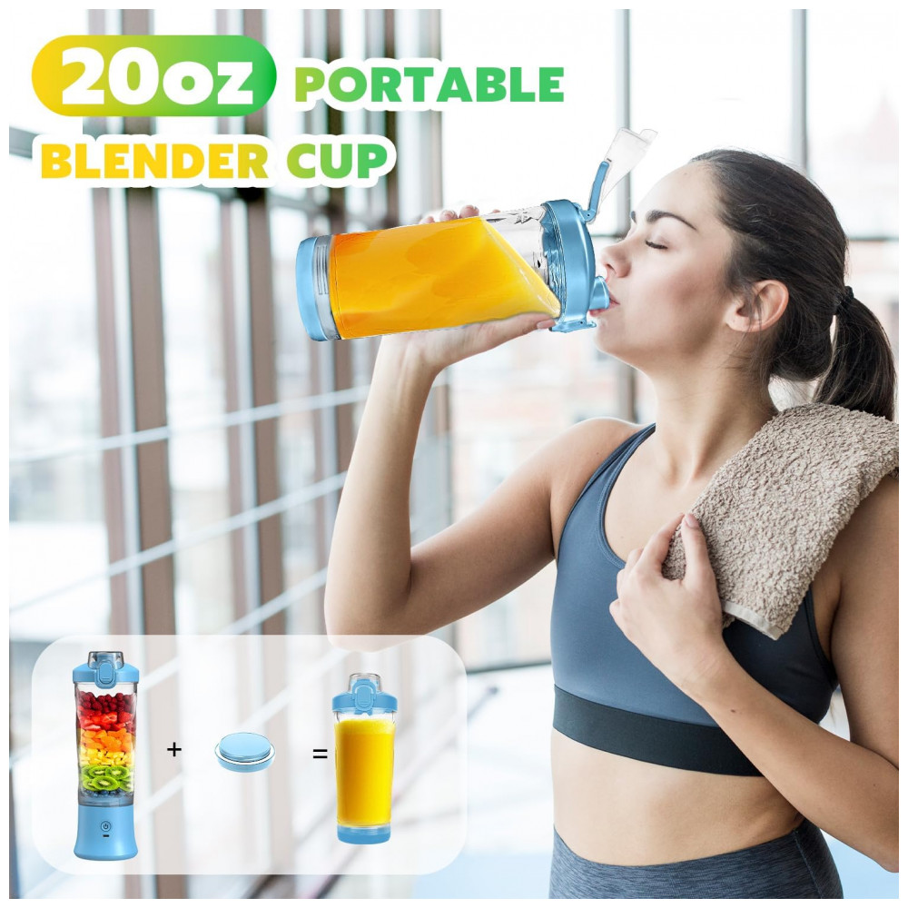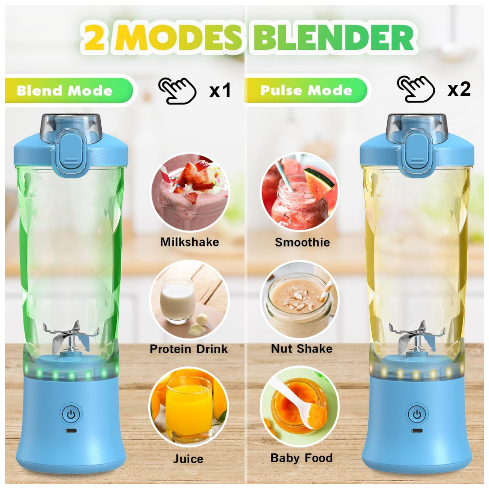 Liquidificador portátil NexaEase 600ml azul com capa térmica preta recarregável USB-C para shakes e smoothies