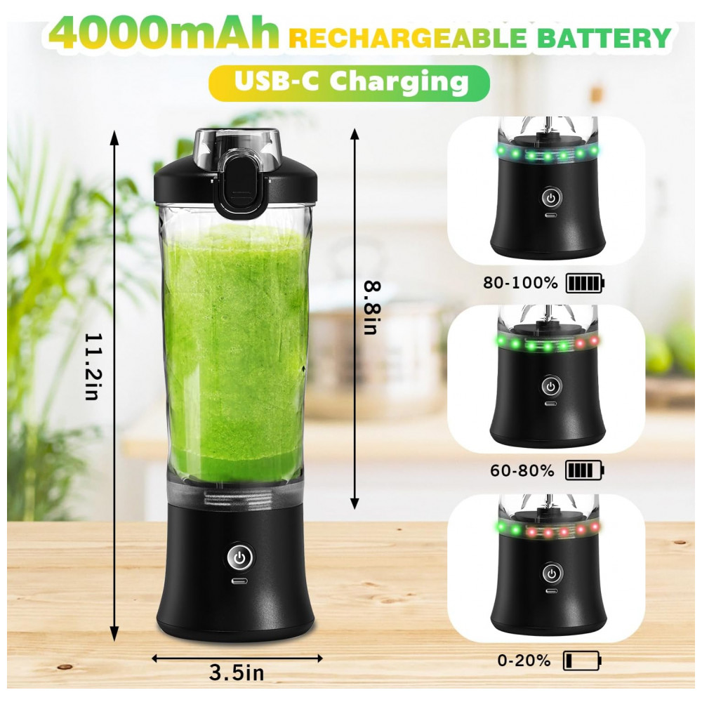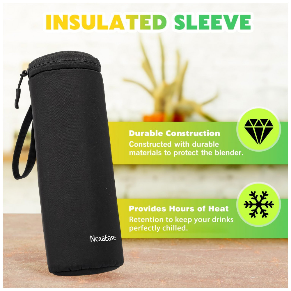 Liquidificador portátil NexaEase 600ml preto com capa térmica recarregável USB-C para shakes e smoothies