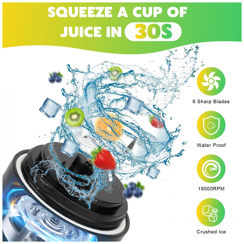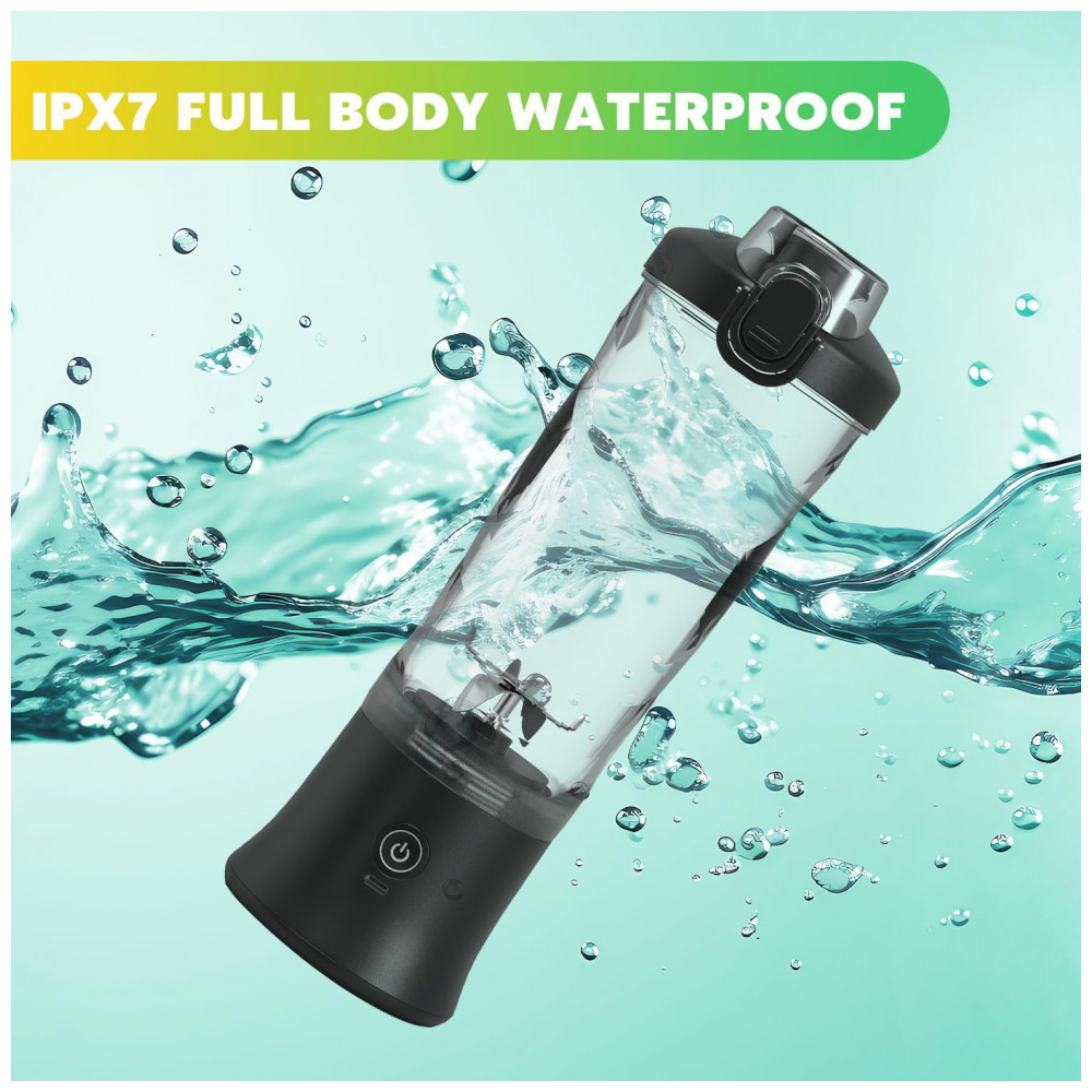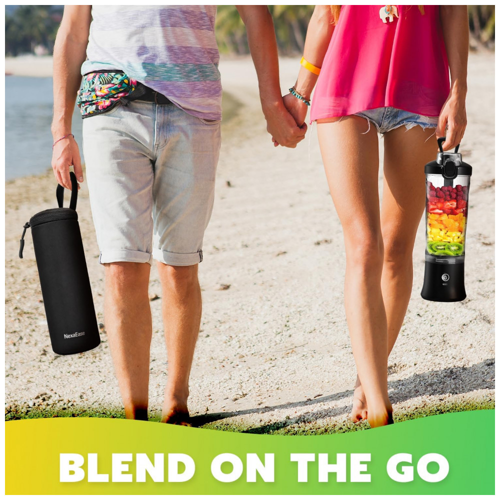 Liquidificador portátil NexaEase 600ml preto recarregável USB-C com 6 lâminas para shakes e smoothies