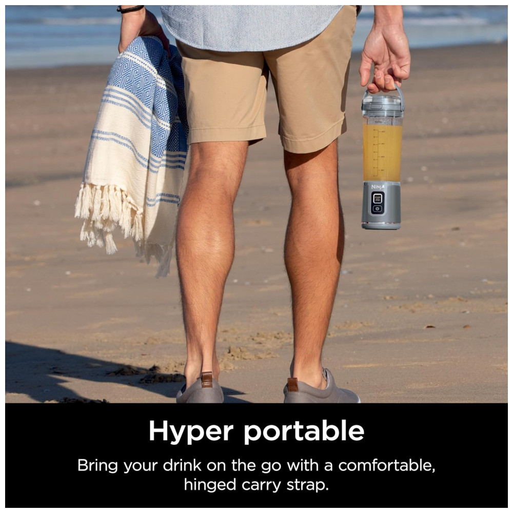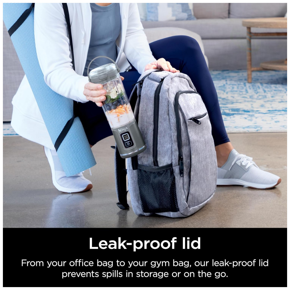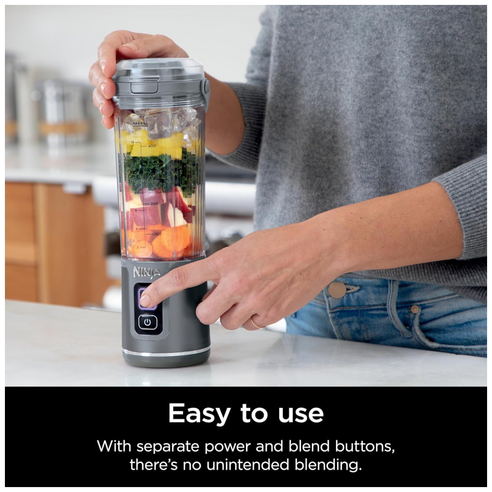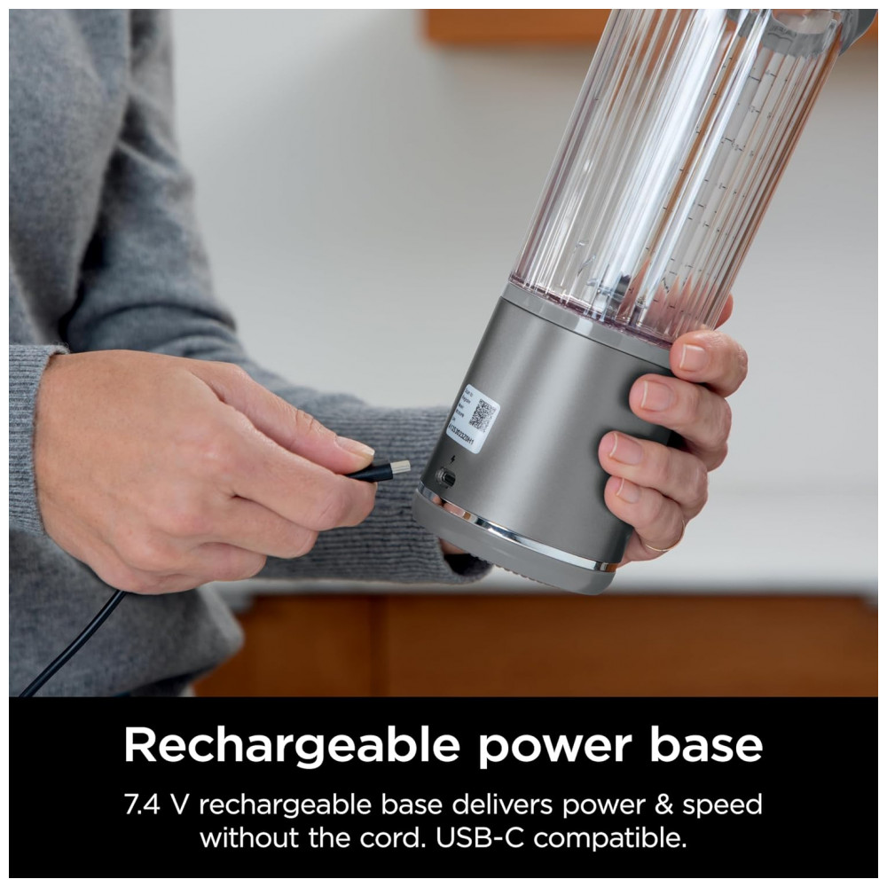 Liquidificador Portátil Ninja Blast Cinza com 2 Copos 530 ml Tampa Antivazamento USB-C Sem Fio 74V