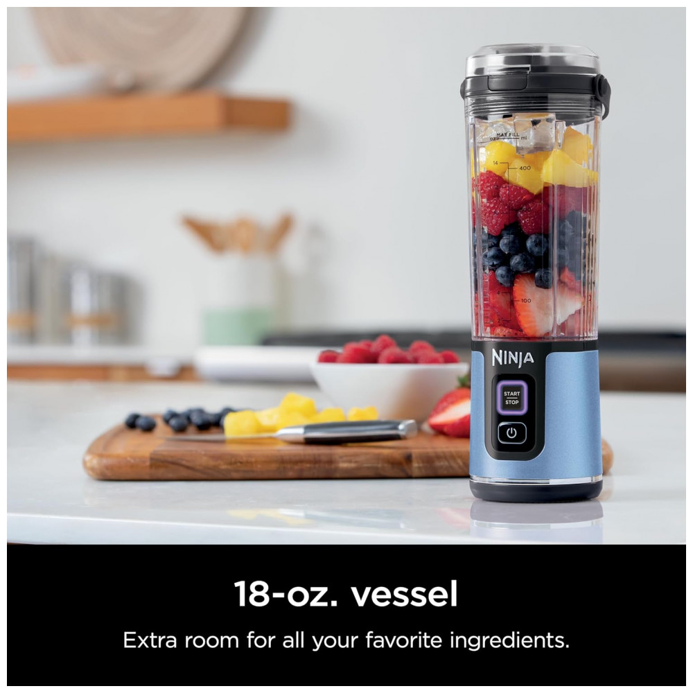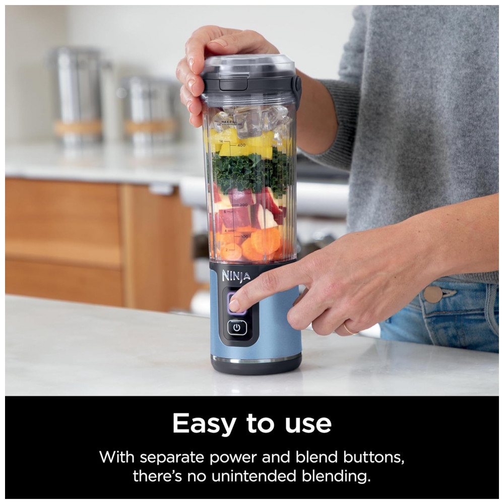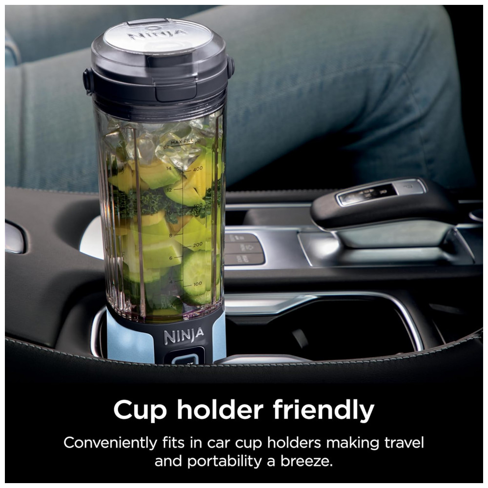 Liquidificador Portátil Ninja Blast Sem Fio Recipiente 600ml Tampa Antivazamento com Alça Azul Metálico BC151BM 7.4V