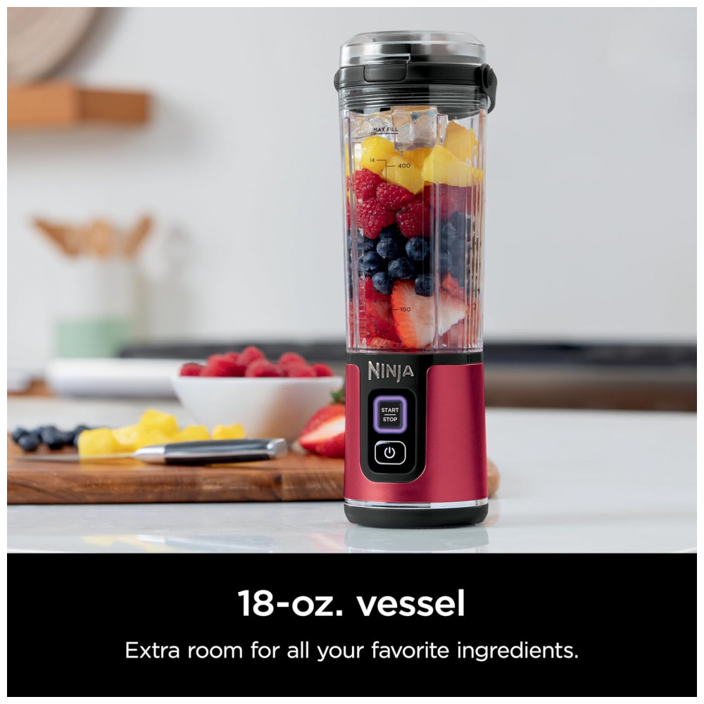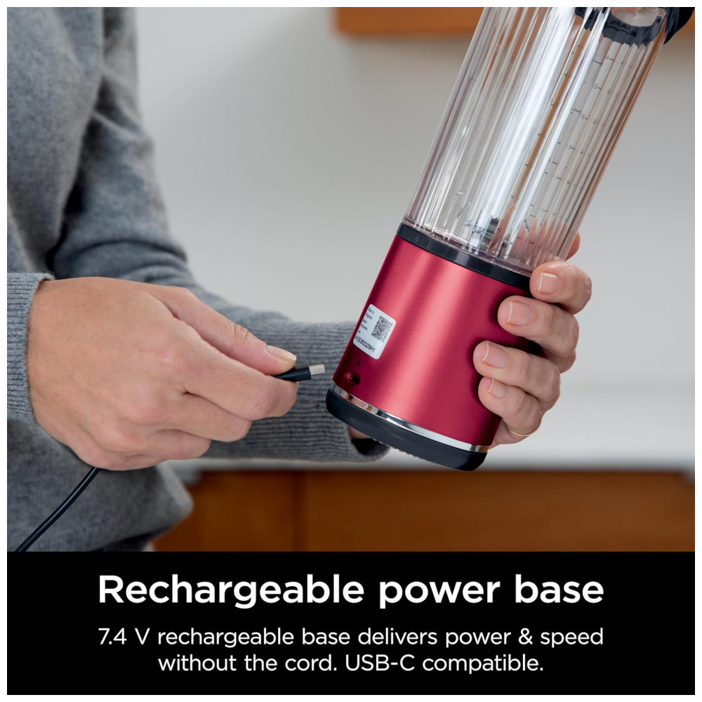 Liquidificador Portátil Ninja Blast Vermelho com 2 Copos 530 ml Tampa Antivazamento USB-C Sem Fio 74V