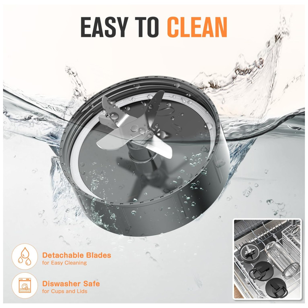 A limpeza deste liquidificador é simples e prática. Basta adicionar sabão e água morna, pressionar para a autolimpeza, e pronto! A base da lâmina removível e o anel de silicone facilitam a limpeza completa. Além disso, você pode colocar a parte superior (exceto o motor) na máquina de lavar louça, tornando o processo ainda mais rápido e sem complicações.