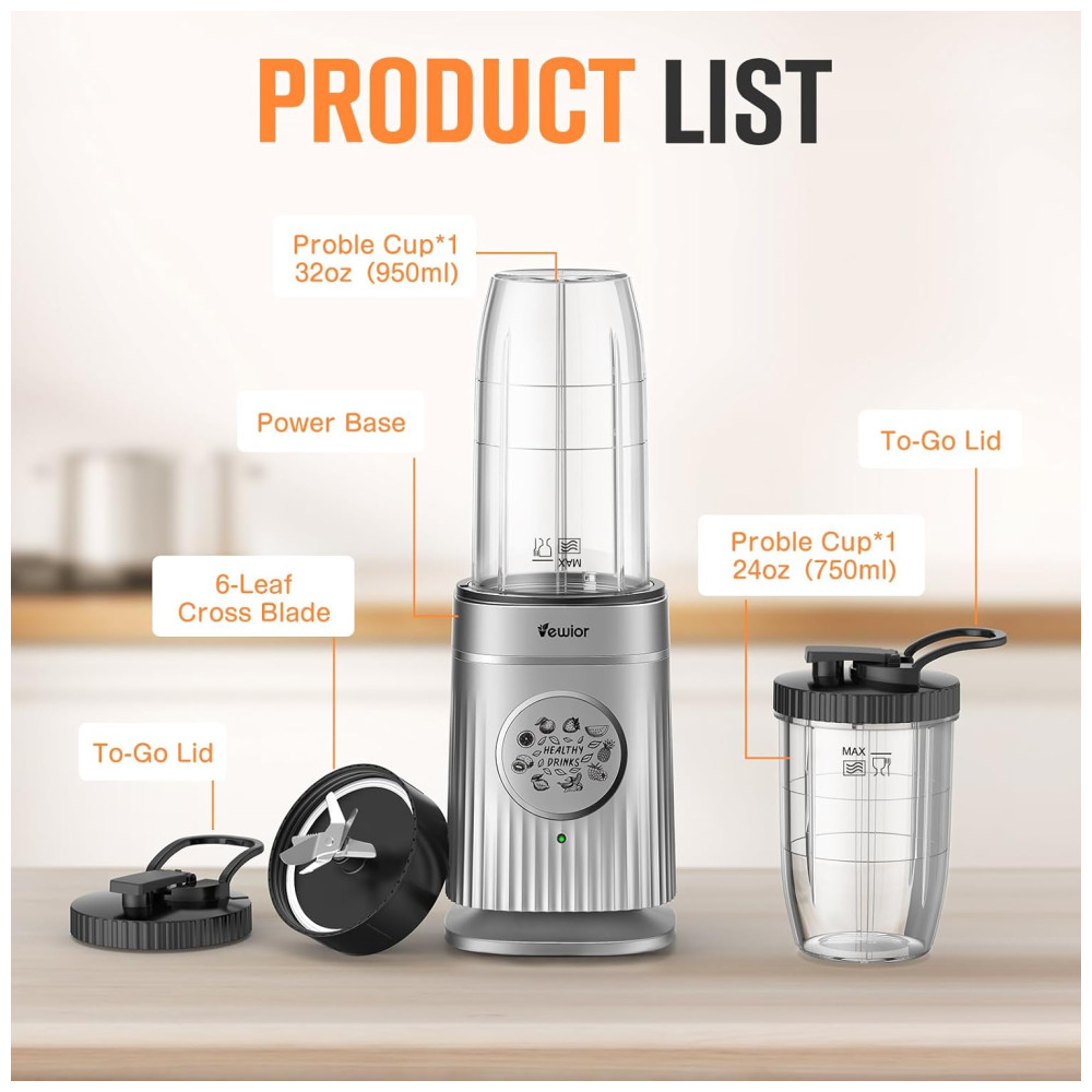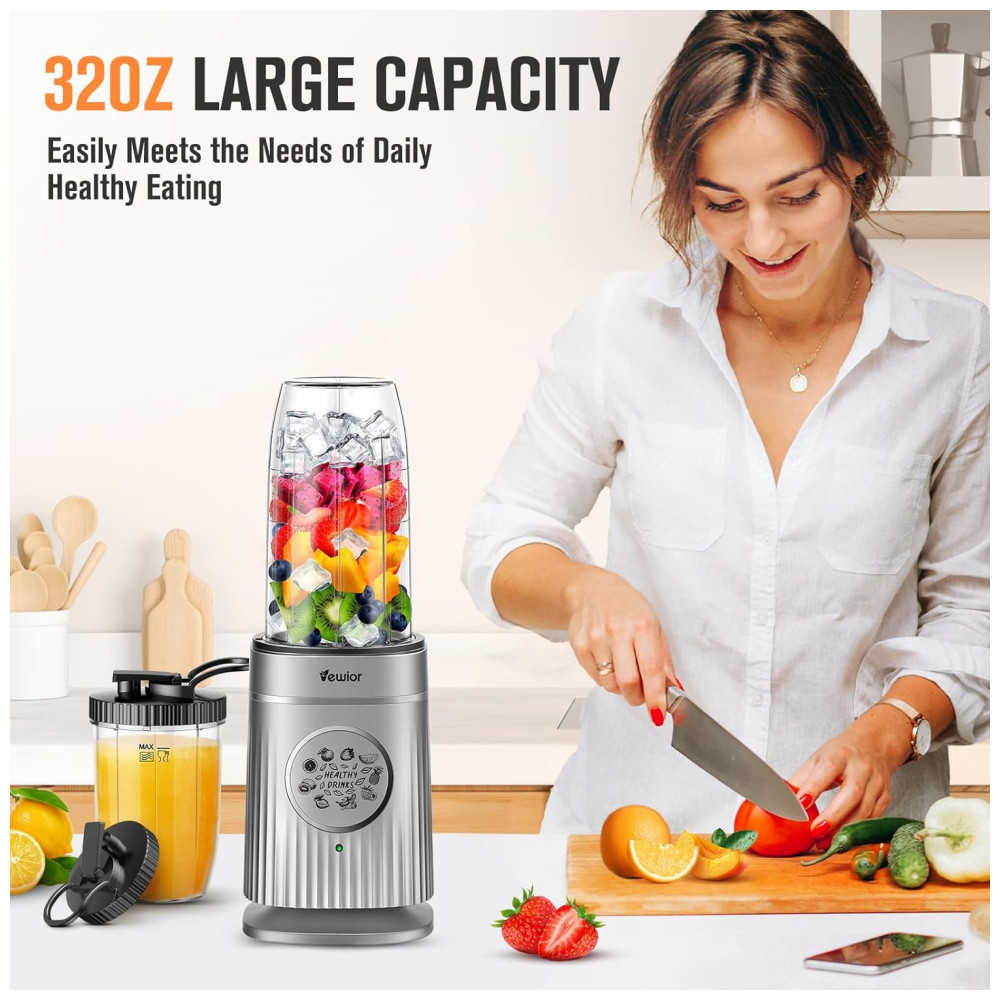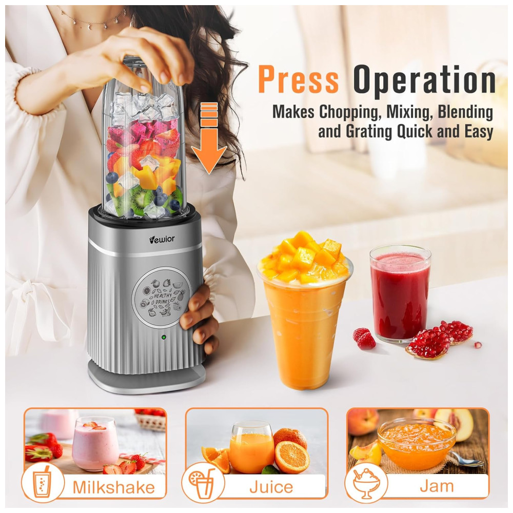 Liquidificador Portátil para Shakes e Smoothies com Capacidade de 950mL e Copo de Viagem Incluso 1500W VEWIOR Cinza