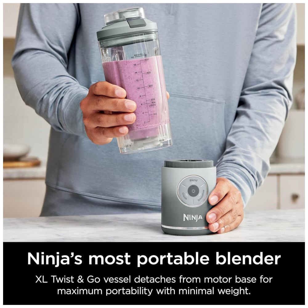 Apresentamos o Ninja Blast Max, um liquidificador sem fio que oferece a mesma potência e desempenho de um modelo com fio. Com a tecnologia Ninja Powerblast, você pode misturar e triturar ingredientes congelados e gelo de qualquer lugar, graças à base removível que é 50 mais leve do que aqueles com bases de motor acopladas. O recipiente Twist Go pode ser facilmente removido para tornar o transporte mais leve e a degustação mais conveniente.