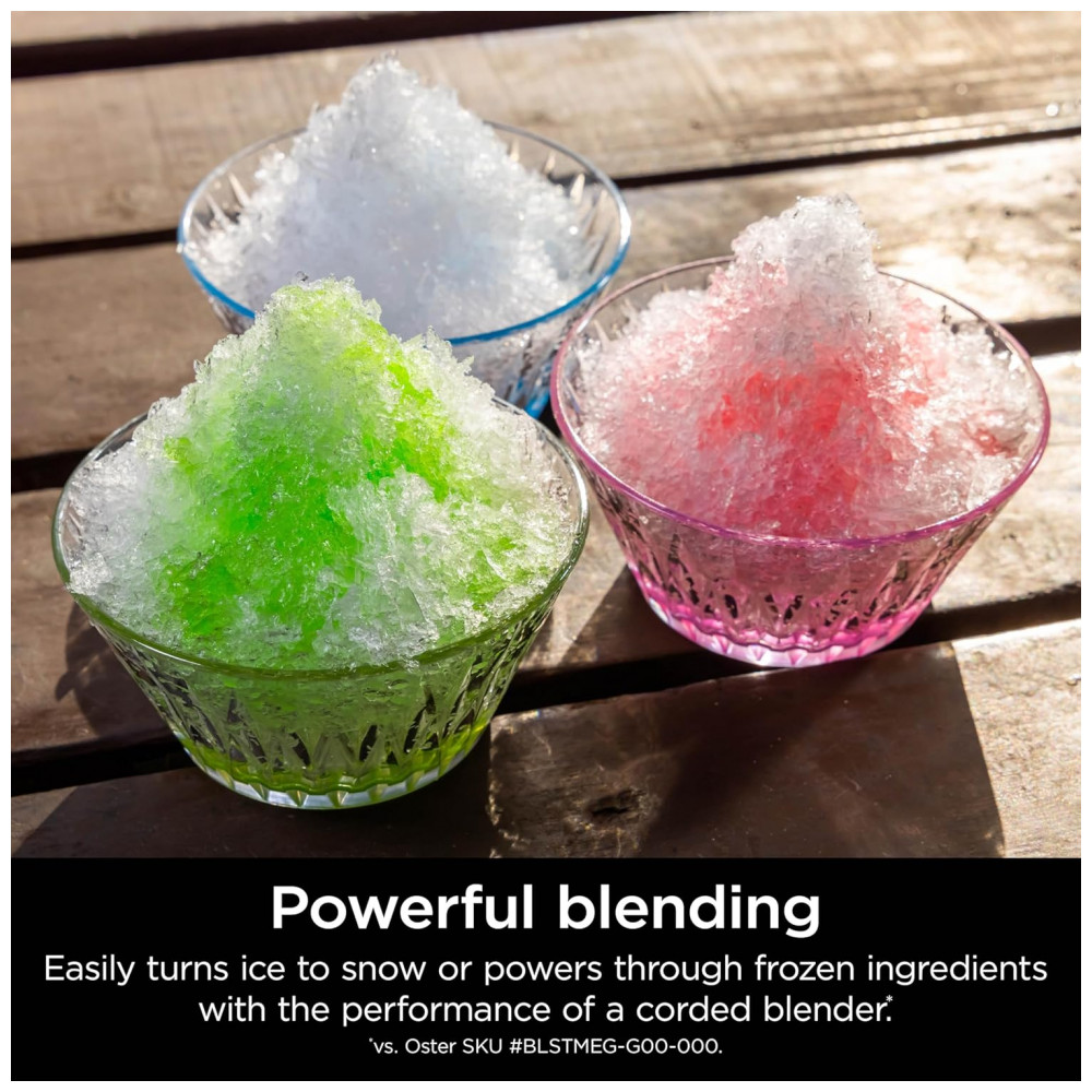 A tampa para gole integrada e a alça de silicone permitem que você beba diretamente do recipiente e leve o facilmente para qualquer lugar. O indicador de vida útil da bateria fornece uma leitura em tempo real sobre quando uma carga é necessária, sem mais adivinhações sobre quando você precisa carregar. A base recarregável oferece o maior tempo de execução de mistura de qualquer liquidificador sem fio, e uma carga completa leva aproximadamente 3 horas.