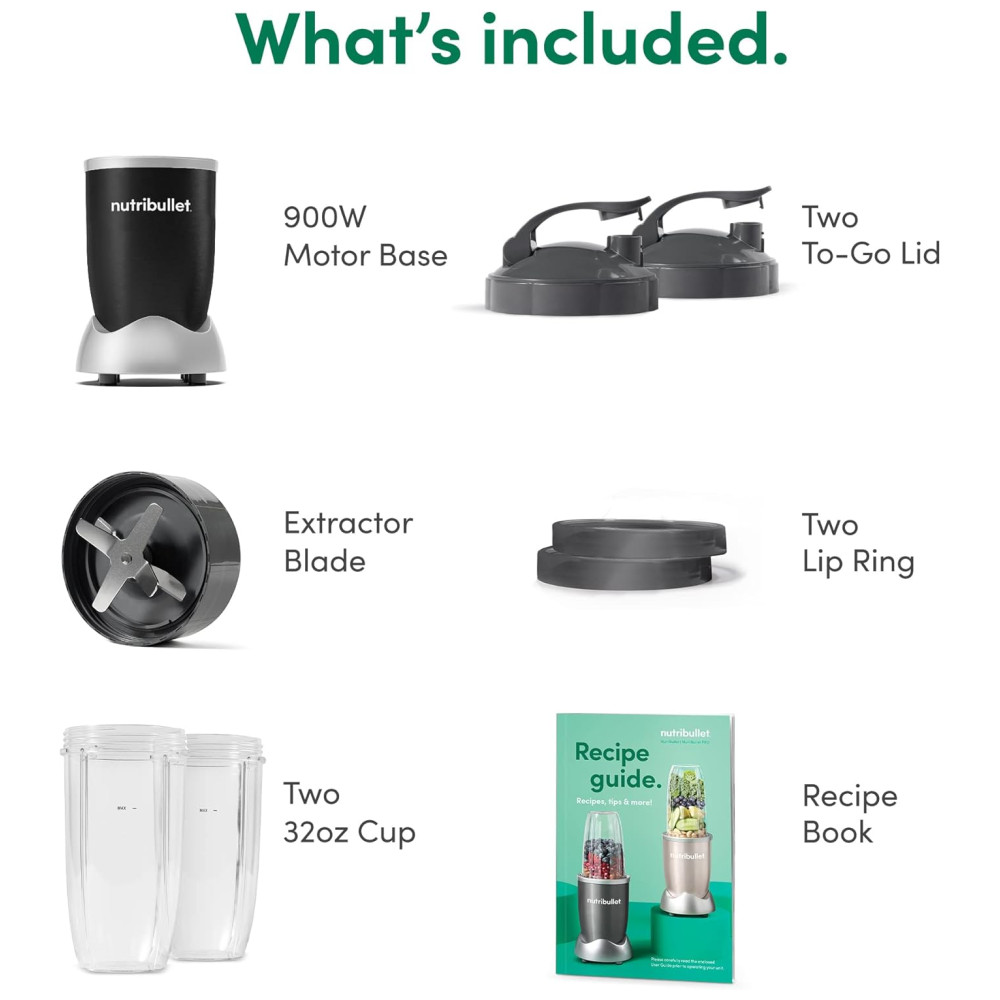 Liquidificador NutriBullet Pro 900W 13 peças extrator de nutrientes copos BPA free aço inox 110V preto