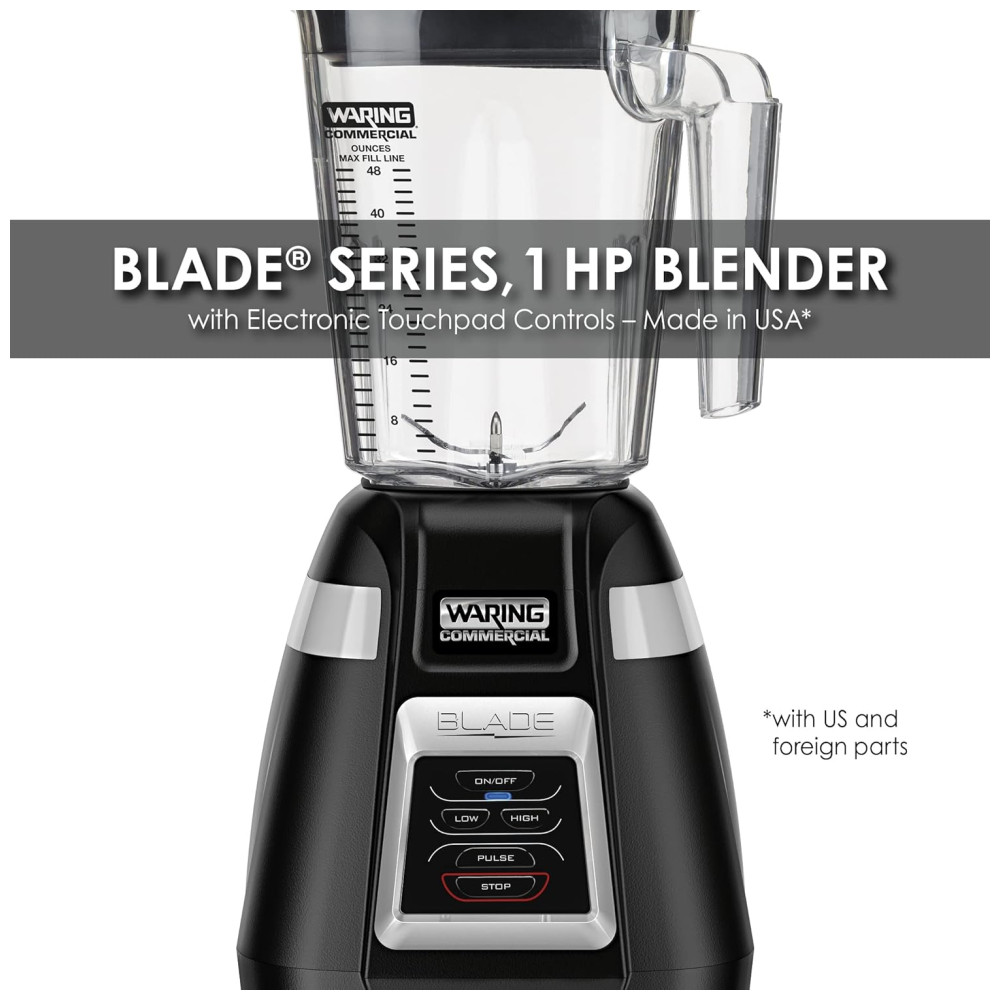 O liquidificador Waring BB320 Blade Series 1 CV de potencia é ideal para bares movimentados, permitindo preparar três margaritas de 560mL em apenas 12 segundos. Equipado com um motor potente de 1 HP e 2 velocidades, este liquidificador apresenta controles eletrônicos touchpad com opções ON, OFF, LOW, HIGH, PULSE e STOP para precisão e facilidade de uso.