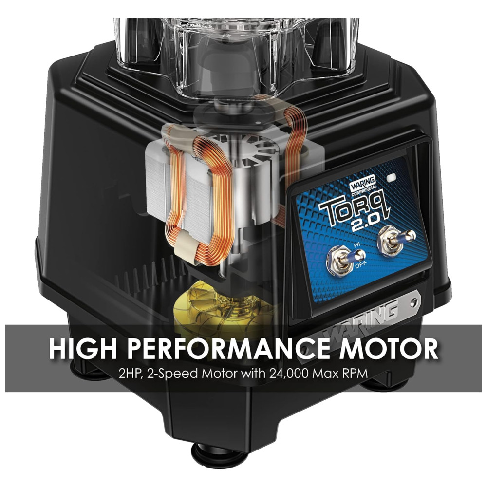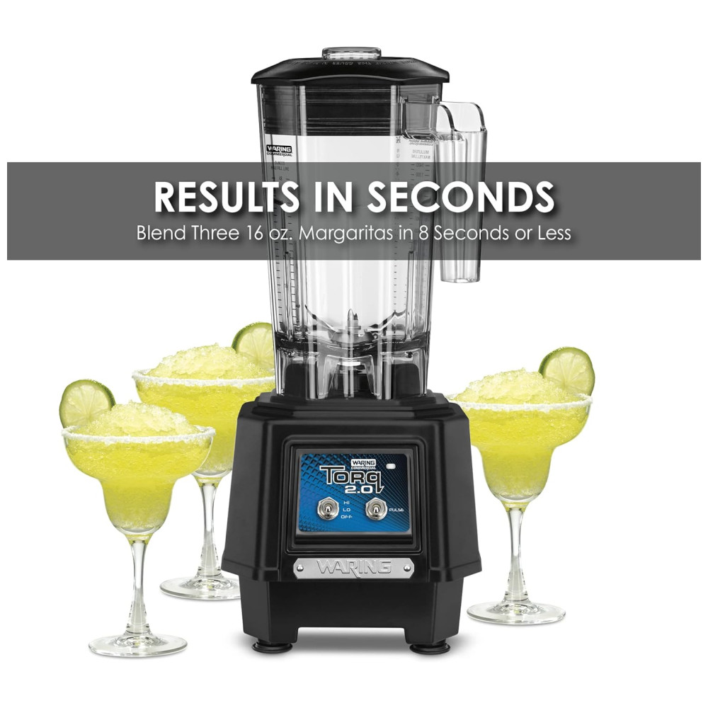 O liquidificador Waring Torq Série 2 TBB175 é um modelo de alta performance projetado especialmente para bares, restaurantes e lojas de smoothies. Equipado com um motor potente de 2 HP e velocidade variável de até 24.000 RPM, ele pode facilmente preparar três margaritas de 560 ml em apenas 8 segundos.