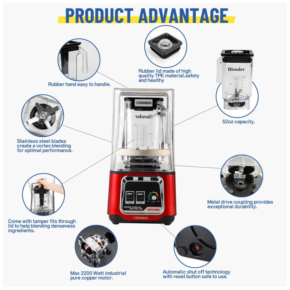 Liquidificador profissional CRANDDI K80 comercial silencioso 2200W 110V 15L com capa antirruído removível vermelho