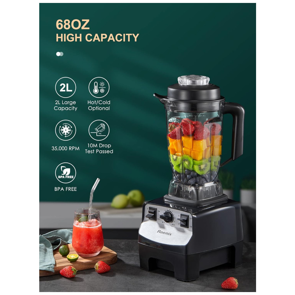 Liquidificador Profissional 2 L com 10 Velocidades Ajustáveis 110V 1450W Reemix Preto