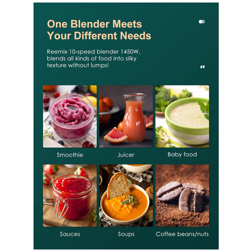 Com uma potência eficiente de 1450W, este liquidificador é equipado com um motor atualizado de 33000RMP e 2,25CV, proporcionando uma vida útil mais longa e um desempenho superior em comparação com outros modelos. Suas 8 lâminas de titânio em aço inoxidável foram projetadas para lidar com os ingredientes mais difíceis, garantindo resultados de alta qualidade em todas as receitas.