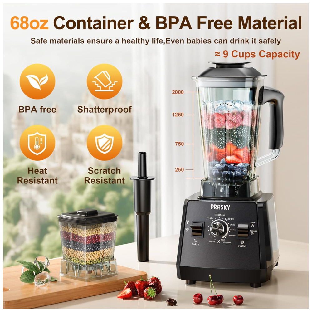 Atualização 2024 – Liquidificador Profissional PRASKY: O liquidificador PRASKY é equipado com um motor potente de 3,0 hp que alcança até 25.000 RPM, oferecendo desempenho superior para triturar gelo, vegetais e frutas com facilidade. Sua lâmina aprimorada de 6 folhas garante uma mistura rápida e eficiente, perfeita para smoothies e shakes.