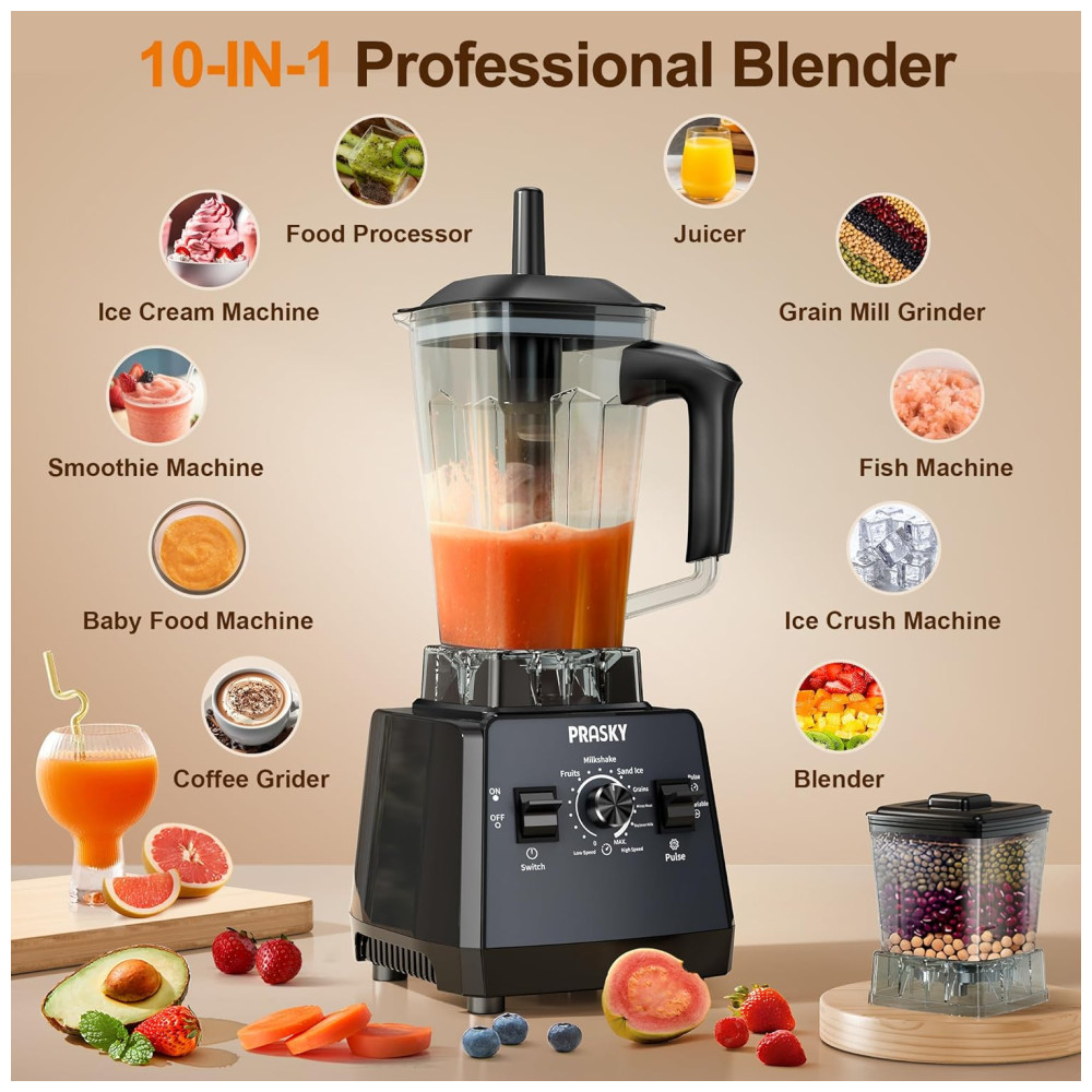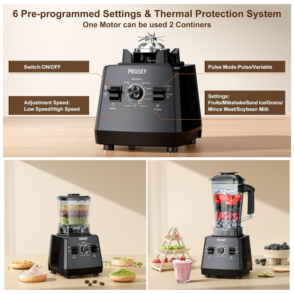 Liquidificador Profissional 2 Litros com 2 Recipientes e Triturador de Gelo 110V 1000W PRASKY Preto
