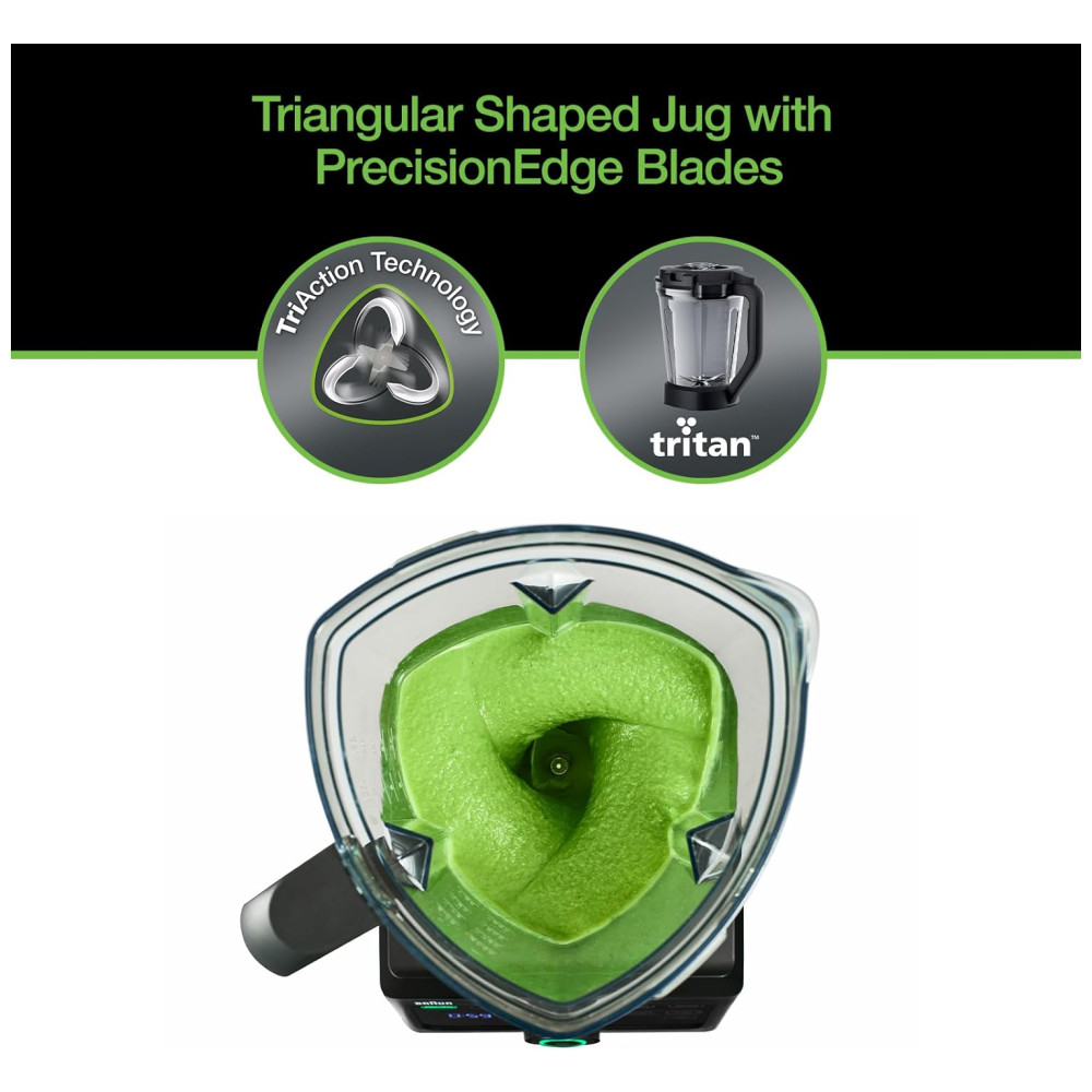 Um jarro distintivo e triangular projetado para garantir resultados de mistura mais rápidos em menos tempo.