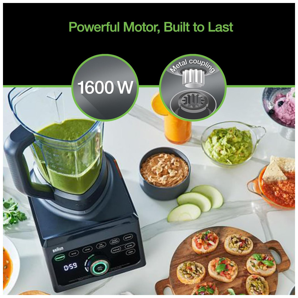 1600 watts de potência premium que misturam precisamente para as texturas mais suaves.