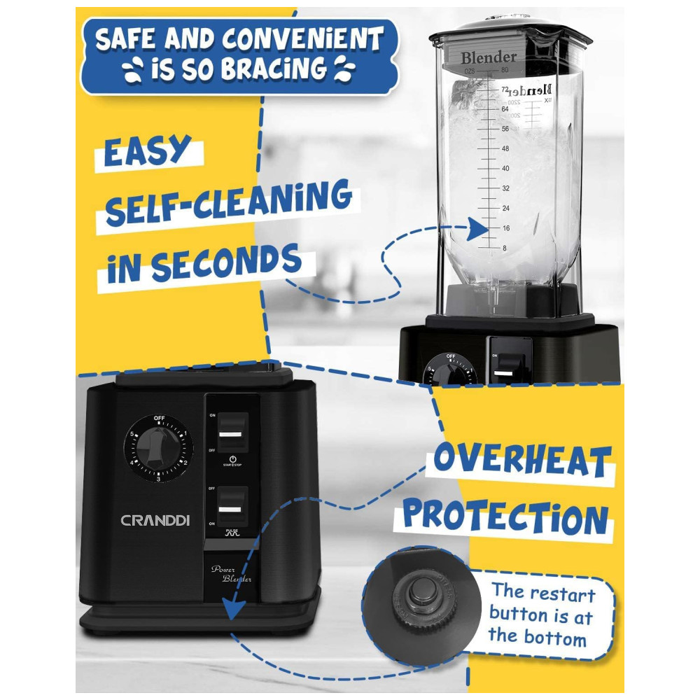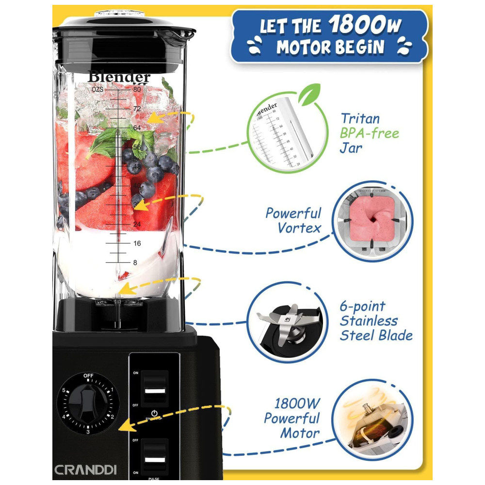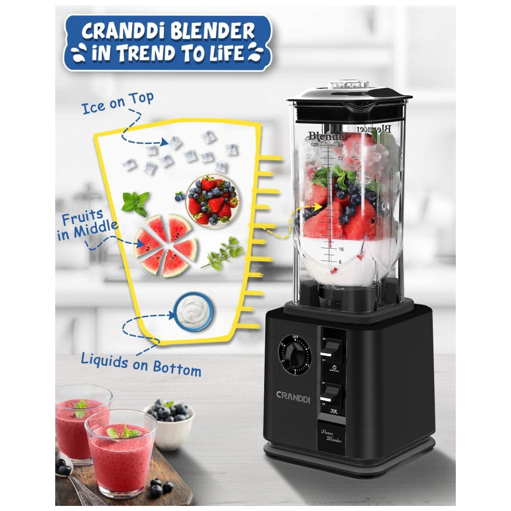 Liquidificador Profissional de Alta Velocidade 23L com Desligamento Automático e Copo Portátil de 600mL 110V 1800W CRANDDI Preto