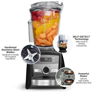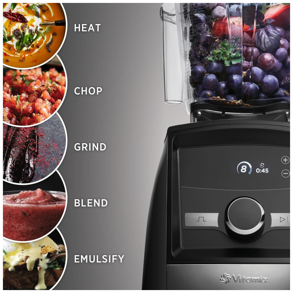 Conheça o Liquidificador Vitamix A3300 da Série Ascent, de Qualidade Profissional, com Recipiente de Baixo Perfil de (aproximadamente 1,89 litros), na cor preta.