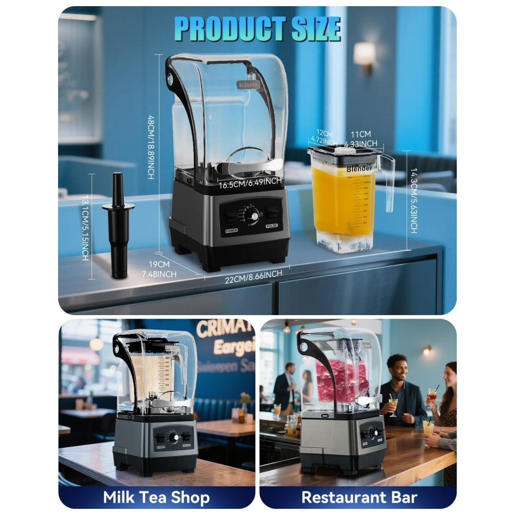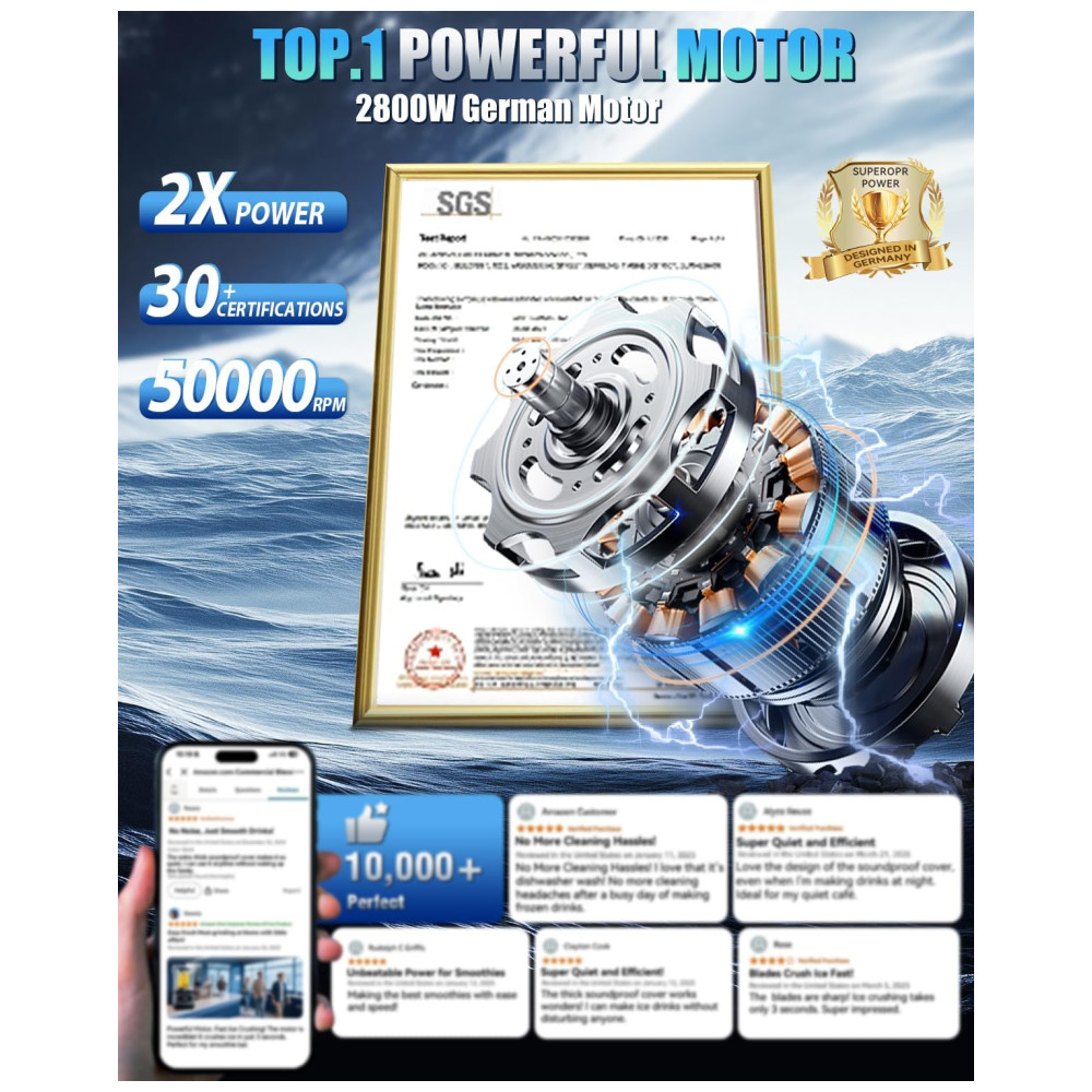 Apresentamos o Liquidificador Comercial de última geração da marca SVKLHY, equipado com um poderoso motor alemão de 2800W que atinge incríveis 50.000 RPM! Certificado pela SGS, com design de circuito magnético e proteção contra superaquecimento, o que garante uma vida útil prolongada em 60%. Suas lâminas japonesas de titânio com nanorevestimento esmagam gelo e frutas em apenas 3 segundos, criando deliciosos sucos e smoothies cremosos. Com controle de precisão silencioso, reduzindo o ruído em 60%, e com capacidade de 2 litros, é perfeito para uso familiar ou comercial. Com design à prova de vazamentos, este liquidificador tornará a sua experiência culinária muito mais eficiente e prática. Ideal para preparar slushes, sucos, smoothies e purês, tornando as refeições em família, entretenimento ou uso comercial ainda mais especiais.