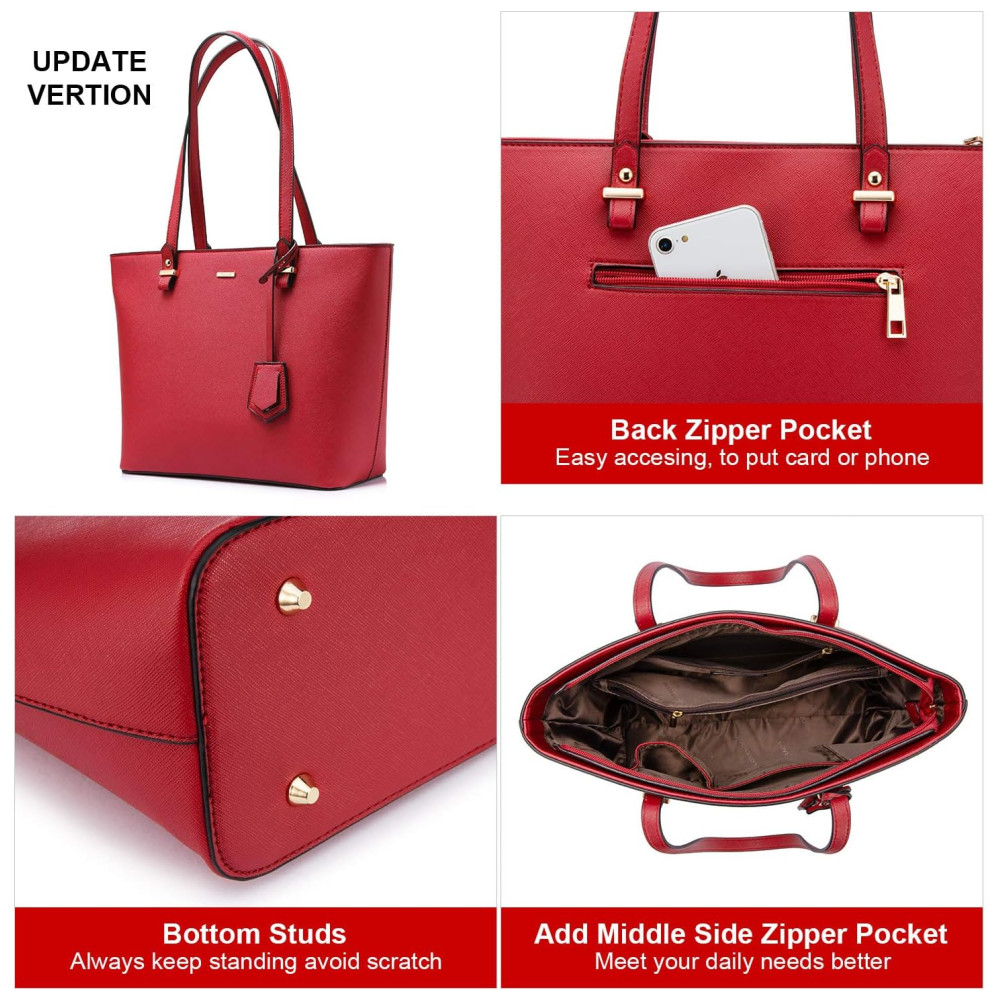 MATERIAL Bem feito de couro sintético de textura cruzada de alta qualidade com ferragens de ouro duráveis. Costura detalhada com zíperes suaves. A bolsa pode ficar de pé sozinha. A sacola grande não tem uma alça longa para ser um crossbody, a alça cross body é para a bolsa do meio. Fechamento com zíper superior. Bolsa e bolsa de ombro 1 compartimento principal, 1 bolso com zíper e 2 bolsos com slot. Uma bolsa, você pode usar como um bolso extra.
