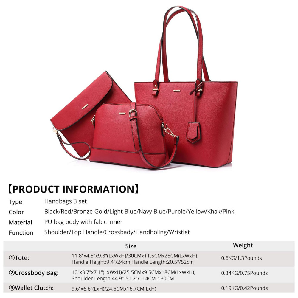 FUNCIONAL Bolsas 3PCS para uso diário. O conjunto de bolsa pode conter seu iPad, carteira, maquiagens, telefone, garrafinha de água, perfumes, luvas e outros itens do seu dia a dia e mantê los organizados. Você pode usá los juntos ou individualmente. Perfeito para namorar, fazer compras, trabalhar, viajar, vocação, festa e outras ocasiões