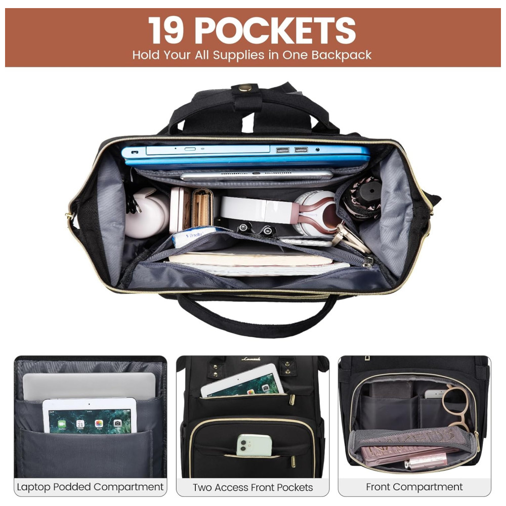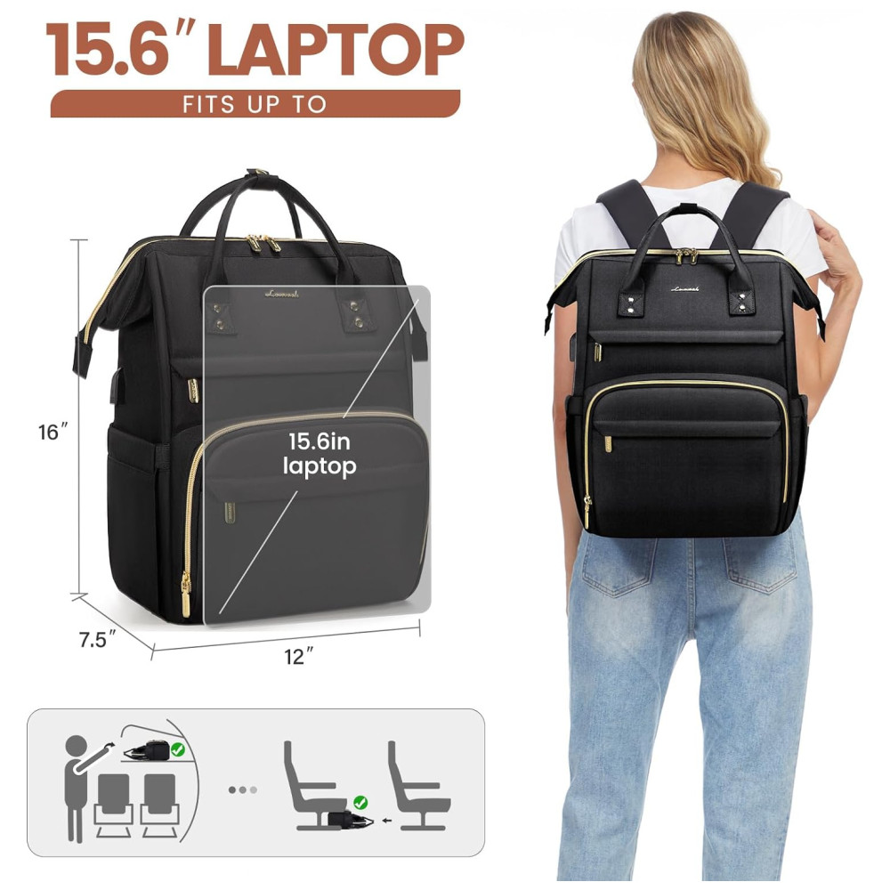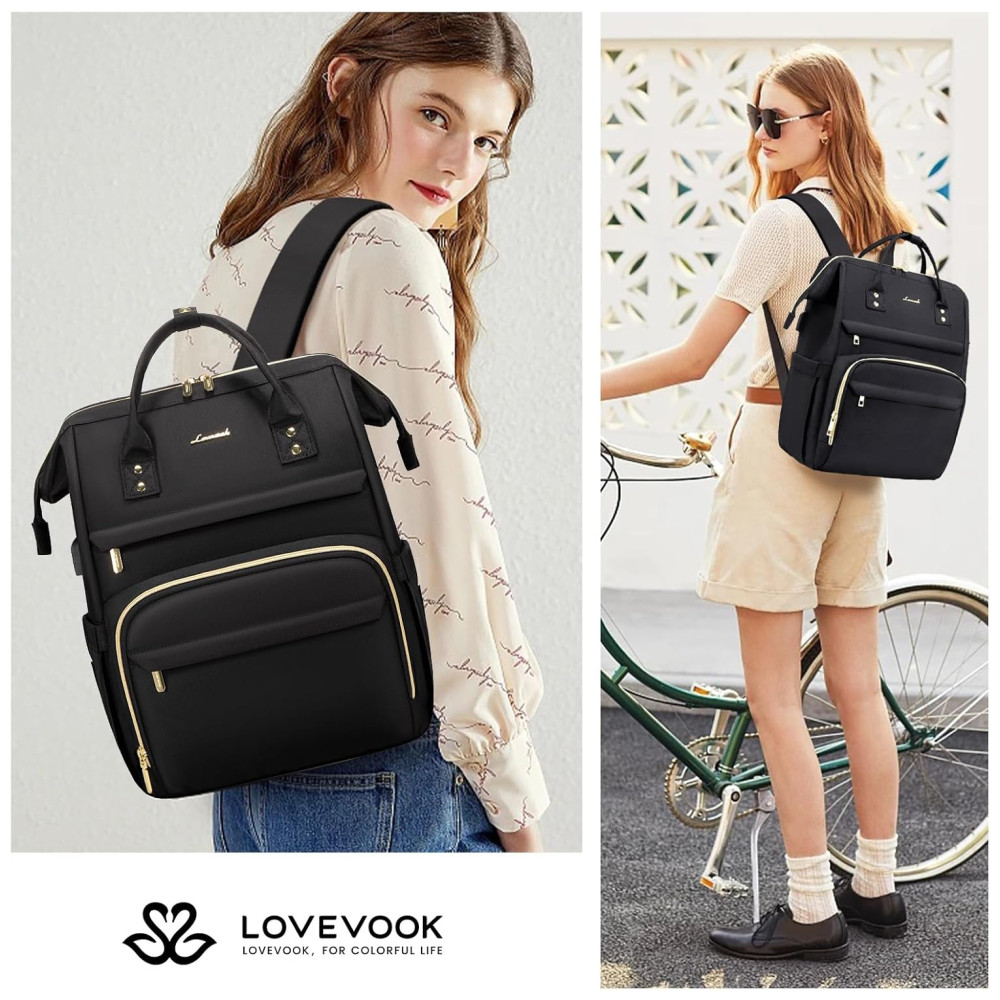 Lovevook Mochila Feminina para Laoptop com Porta USB Preta