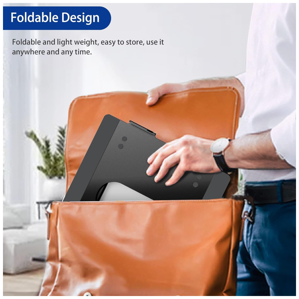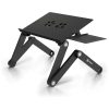 Ajuste o suporte para laptop é feito de alumínio resistente, você pode inclinar em diferentes ângulos e colocá lo mais alto ou mais baixo dependendo de suas necessidades
