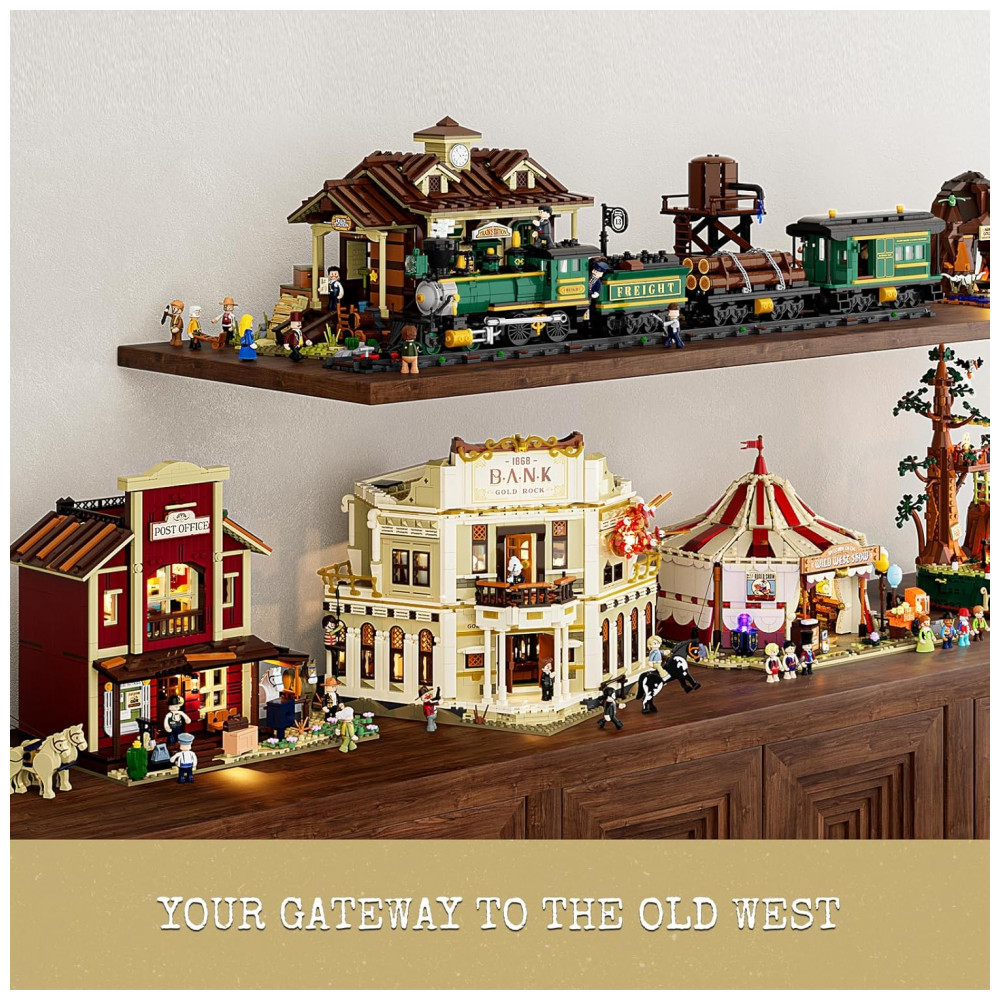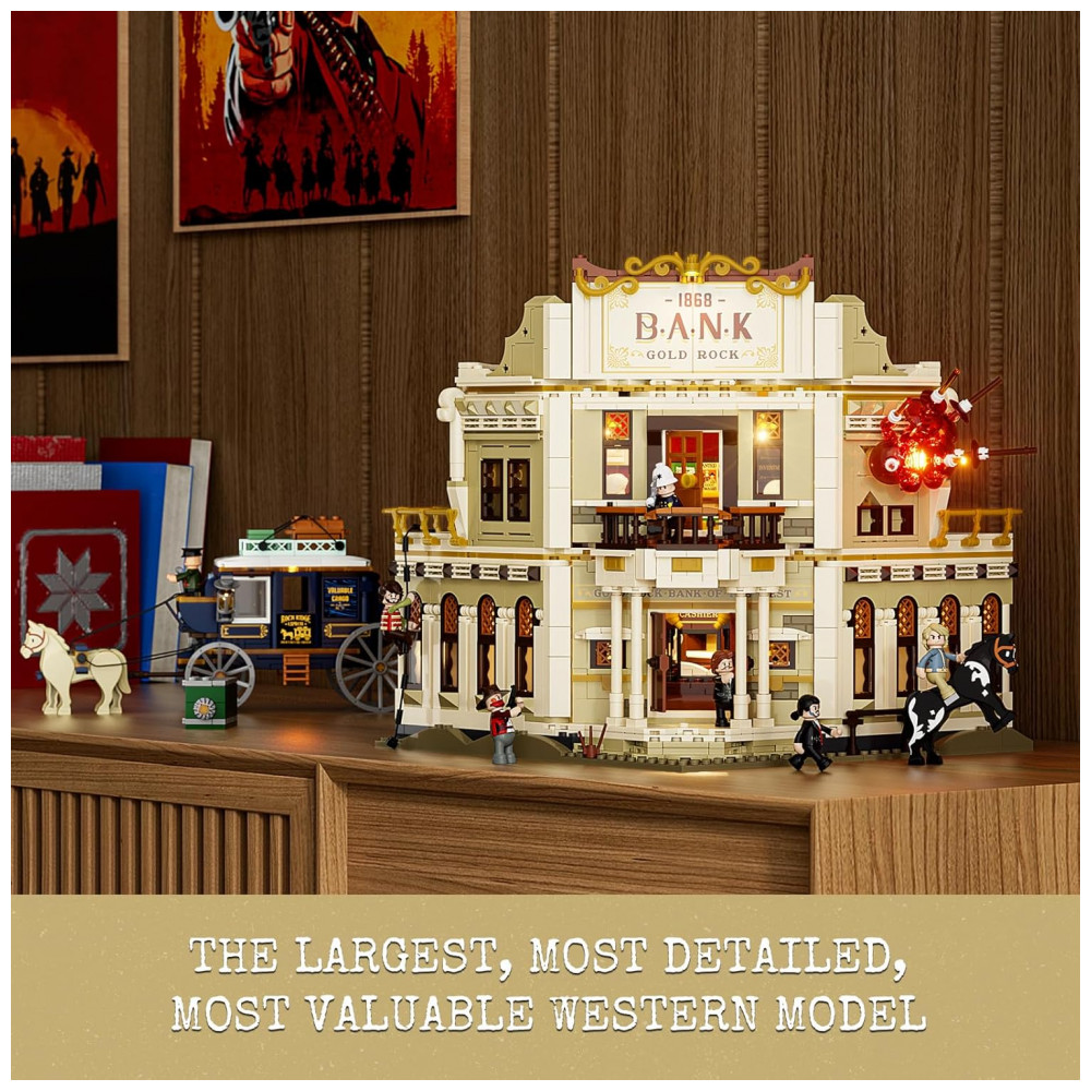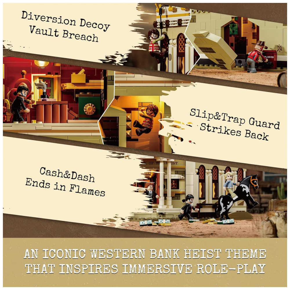 Lumibricks Western Bank Heist com iluminação LED 2875 peças + Sequoia Bandit Outpost 1183 peças cenário completo Velho Oeste